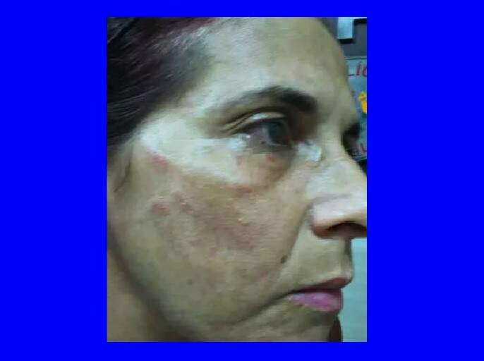 Funcionária do setor de acolhimento de um hospital no Acre, Francisca da Silva Oliveira, 40 anos, exibe no rosto marcas de agressões que, segundo ela, teriam sido feitas pela mulher de um paciente da unidade. Conforme relatou Francisca, a mulher chegou com familiares na instituição de saúde para acompanhar o marido que havia sido baleado.
