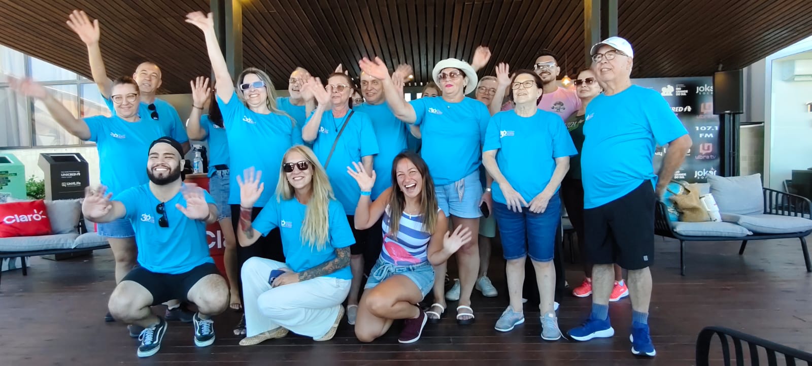 Cerca de 20 pessoas da Fundação Thiago Gonzaga participaram da ação do Vida urgente e Detran-RS no espaço da Ulbra no litoral na praia de Atlântida em Xangri-la