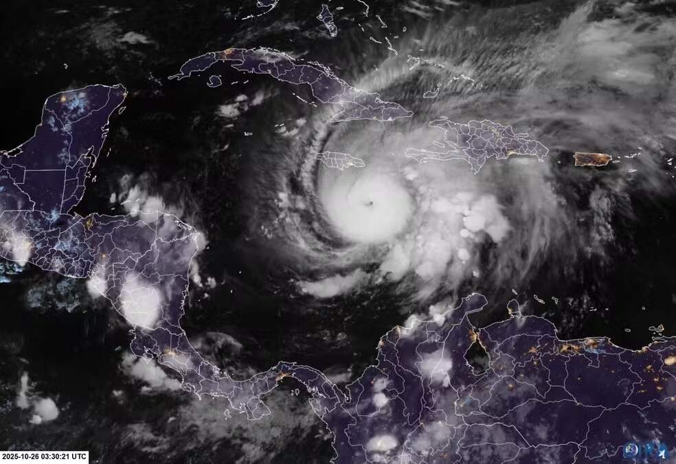 Foto: DivulgaçãoO furacão Melissa atingiu a categoria 5 nesta segunda-feira (27) no mar do Caribe e ameaça países da região com ventos de até 260 km/h. O fenômeno se aproxima da Jamaica, que decretou evacuações em todo o território.