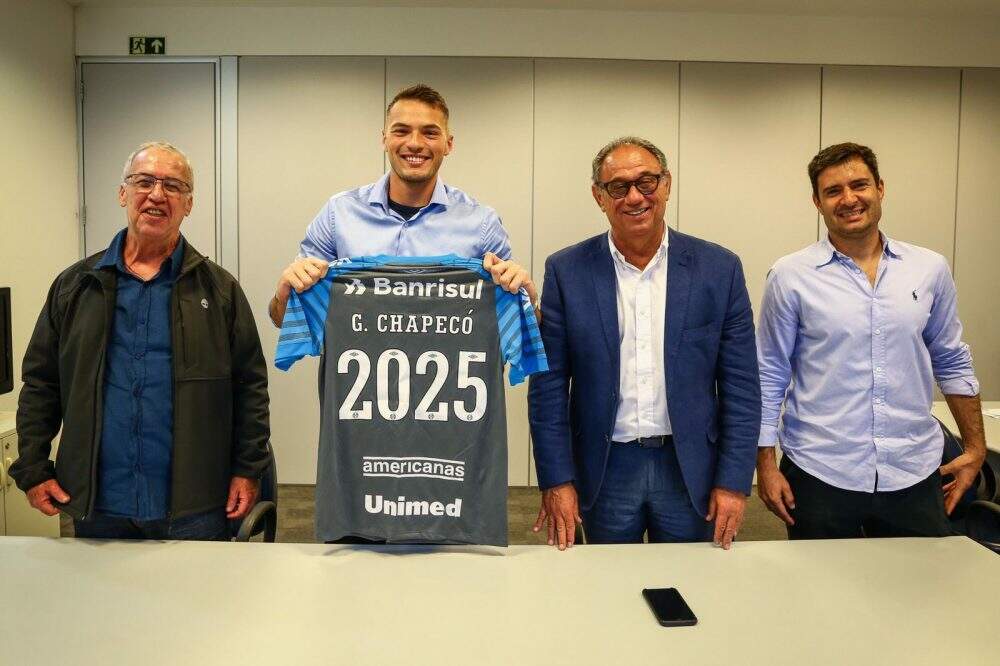 Gabriel Chapecó está de contrato renovado com o Grêmio. Apresentando um grande desempenho debaixo das traves nesta temporada, o goleiro gremista assinou uma extensão contratual até dezembro de 2025. Estiveram presentes nesta reunião os novos dirigentes Denis Abrahão e Sérgio Vasquez, e o executivo de futebol, Diego Cérri.