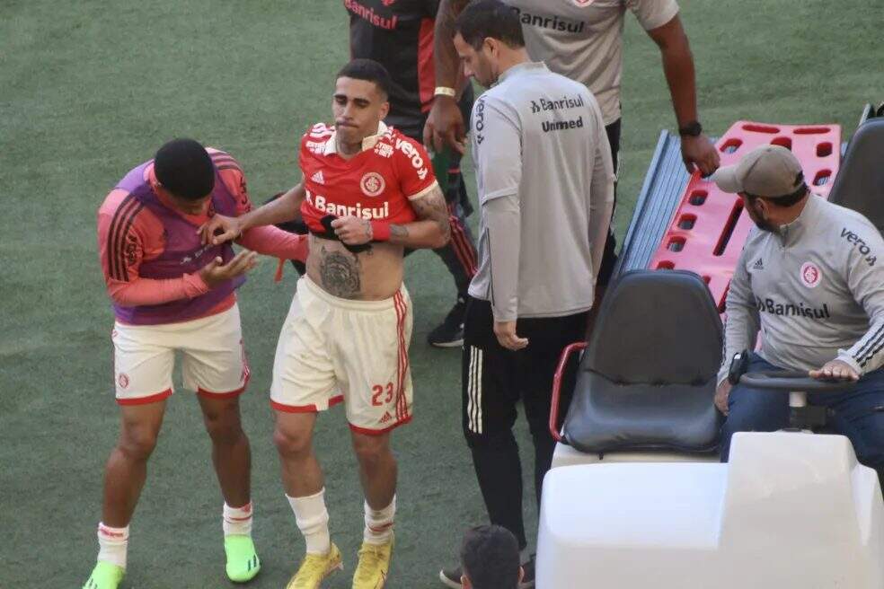 Como o Inter já tinha feito as cinco substituições, acabou a partida com um jogador a menos. Ainda assim, sustentou a vitória por 1 a 0 sobre o Santos no Beira-Rio, em Porto Alegre.