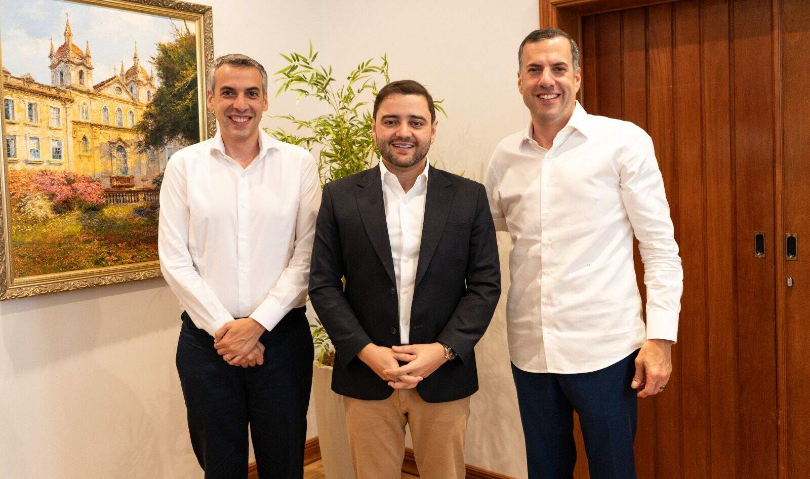 João Pedro Palhano Melke – vice-presidente da Ulbra (à direita) – recebeu o vice-governador Gabriel Souza (ao centro), acompanhado de Carlos Augusto Melke Filho – presidente da mantenedora AELBRA da Rede Ulbra de Educação.