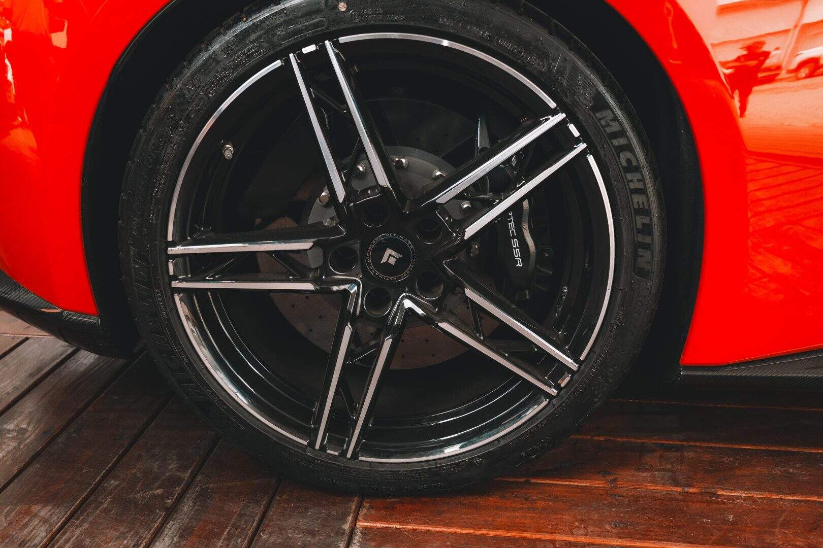 A tração integral permanente, aliada a pneus Michelin Pilot Sport 4S e um sistema eletrônico de controle de largada, garante que toda essa força seja transmitida ao solo com máxima eficiência. Em alta velocidade, a asa traseira se ergue para aumentar a carga aerodinâmica e manter a estabilidade.