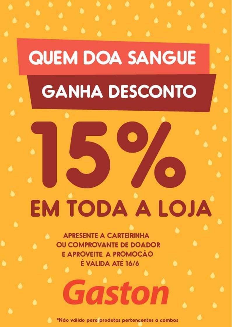 A rede de lojas Gaston, está preparando uma promoção para doadores de sangue. Em comunicado, a Gaston informou que, para celebrar o Dia Mundial da Doação de Sangue, que ocorreu na ultima sexta-feira (14), as lojas estarão dando um desconto de 15% em qualquer produto da rede. A campanha intitulada “QUEM DOA SANGUE, GANHA DESCONTO” tem o objetivo de homenagear “os gaúchos que fazem o bem, que têm disposição e alegria em ajudar os outros”.