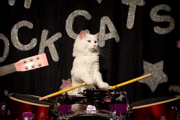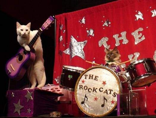O ponto alto é a banda Rock Cats, liderada pela gata Tuna, 13 anos, na qual os seis integrantes felinos “fingem” tocar guitarra, bateria, teclado e outros instrumentos em miniatura (na verdade, eles só produzem alguns “barulhos” com os instrumentos).