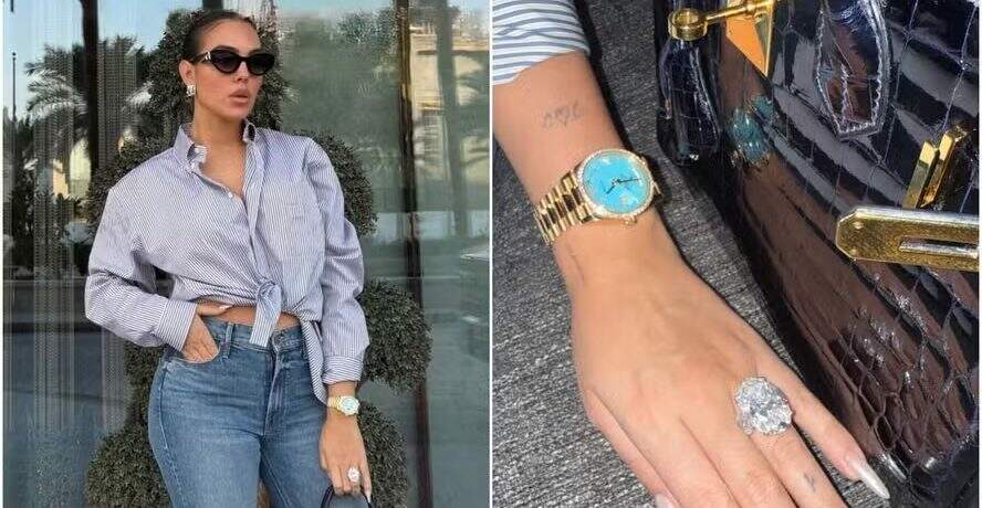 Georgina também exibiu um Rolex de ouro amarelo cravejado de diamantes, encontrado online por mais de R$ 1 milhão, além de uma bolsa de grife preta avaliada em US$ 65,9 mil (aproximadamente R$ 354 mil).