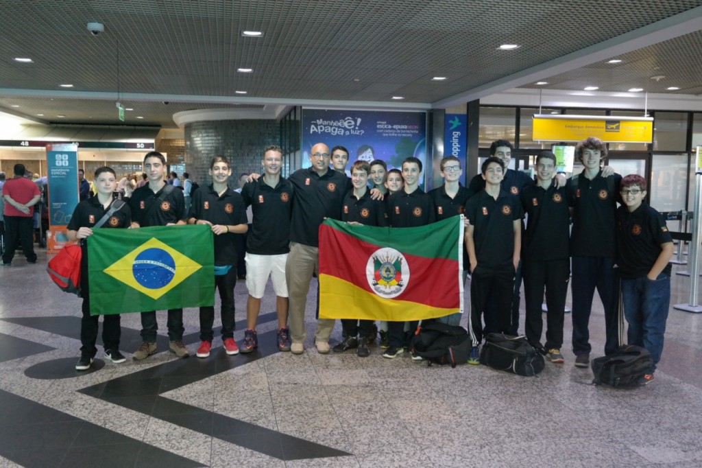 O grupo de jovens atletas entusiasmados esperando o embarque no aeroporto. (Foto: divulgação)