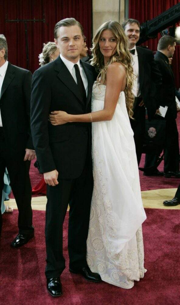 Usando um vestido Dior, a modelo na cerimônia do Oscar de 2005. Na época, ela namorava o ator Leonardo DiCaprio.