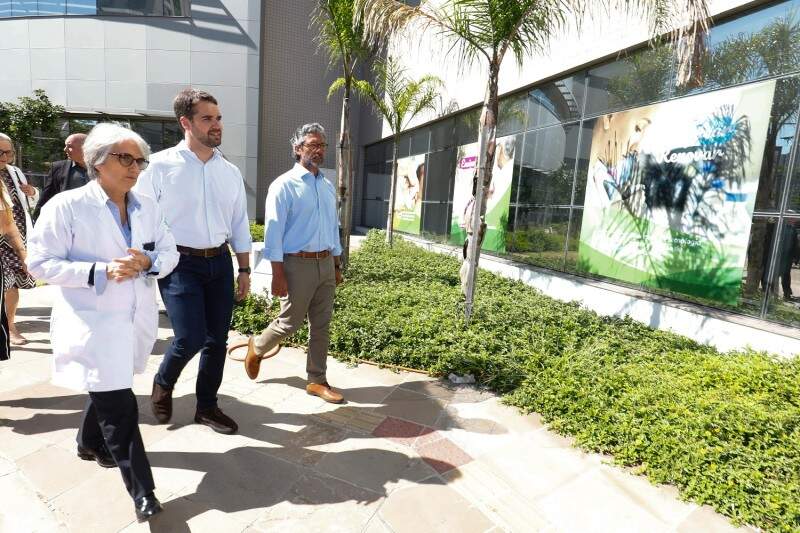 Governador (C) percorreu área ampliada do hospital ao lado da presidente do HCPA, Nadine Clausell, e do deputado Frederico Antunes