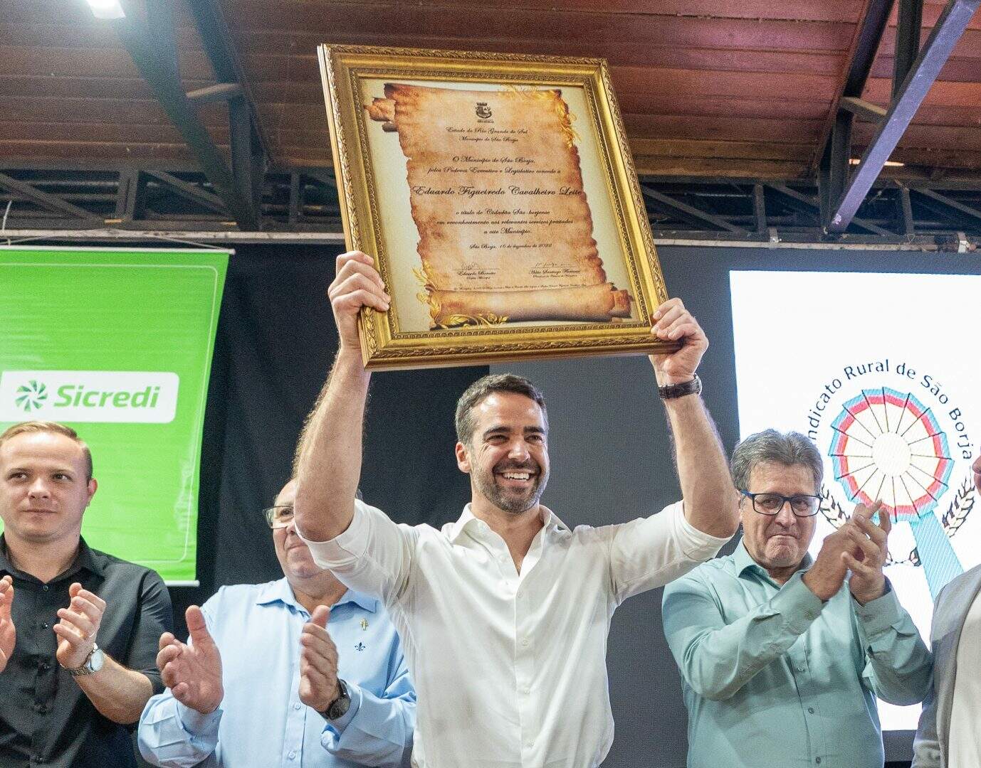Realizada durante a reunião-almoço na sede da Associação Comercial e Industrial de São Borja (Acisb), a entrega da honraria foi concedida no âmbito da programação da Expofeira, no Parque de Exposições do município. Dentre os presentes estavam o titular da Secretário de Estado da Cultura (Sedac), Eduardo Loureiro, e o líder do governo na Assembleia Legislativa, Frederico Antunes.