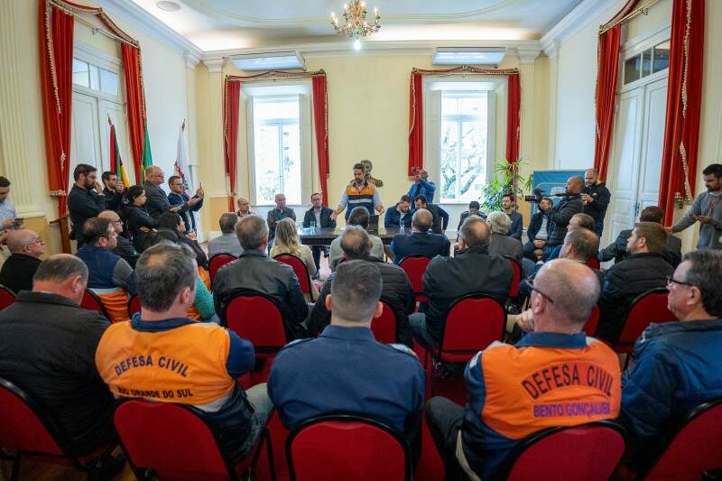 Foto: Maurício Tonetto/SecomO governador Eduardo Leite se reuniu, nesta sexta-feira (8), com 23 prefeitos de municípios da Serra para discutir o processo de recuperação e reconstrução estrutural após a enxurrada do início da semana. O encontro foi realizado na prefeitura de Bento Gonçalves.
