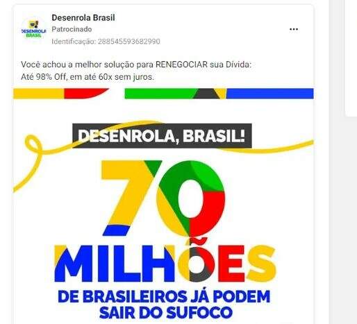 A Senacon (Secretaria Nacional do Consumidor) determinou que o Google e o Facebook retirem do ar anúncios falsos sobre o programa de renegociação de dívidas do governo federal, o Desenrola Brasil. Em caso de descumprimento, as empresas poderão ser multadas em R$ 150 mil por dia.