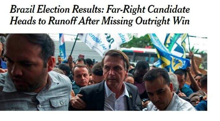 A vantagem de Bolsonaro no primeiro turno da eleição presidencial contra o segundo colocado, o petista Fernando Haddad, foi destaque na imprensa internacional