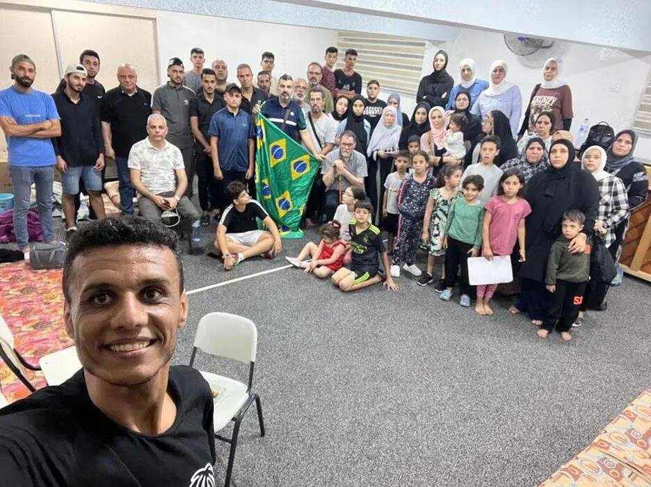 Na foto, grupo de brasileiros estavam abrigados em escola antes da transferência para o sul da Faixa de Gaza, onde esperam autorização para repatriação