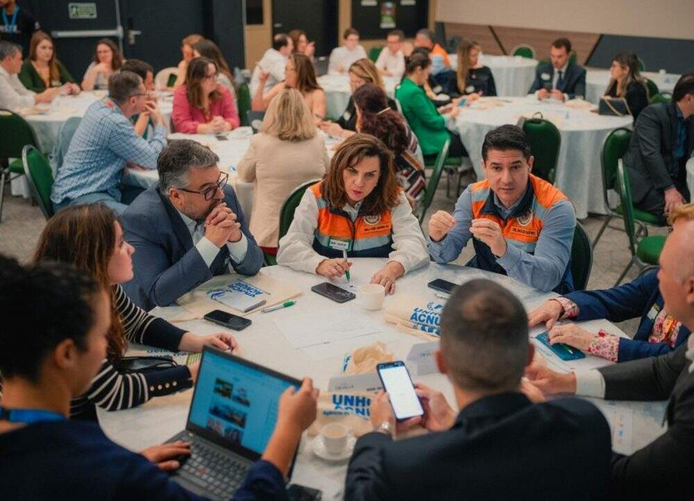 “Este encontro é realizado na semana do Dia Internacional para a Redução de Desastres, data criada pela ONU. Estamos em um hotel que foi fortemente atingido pela enchente na Zona Norte da cidade. Aqui a água chegou a 2 metros de altura. E nessa região o Aeroporto Salgado Filho será finalmente reinaugurado em breve [21 de outubro, de forma parcial], cumprindo uma etapa fundamental para a recuperação do Estado”.
