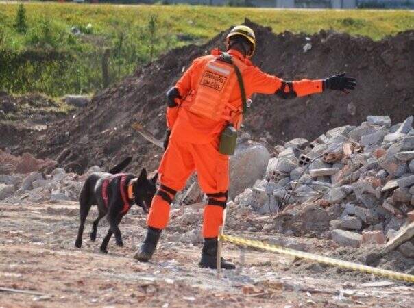 Binômios são especializados na localização de pessoas em áreas de desastres.