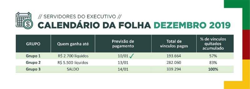A quitação total da folha de dezembro está prevista para terça-feira (14).