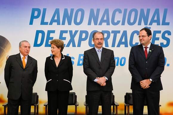 O governo federal lançou nesta quarta-feira (24), no Palácio do Planalto, o Plano Nacional de Exportações, que conta com cinco pilares para estimular as vendas externas de produtos brasileiros: acesso a mercados; promoção comercial; facilitação do comércio; financiamento e garantia às exportações; e aperfeiçoamento de mecanismos e regime tributários para o apoio às exportações. A solenidade contou com a participação da presidenta Dilma Rousseff, do vice Michel Temer e de ministros.