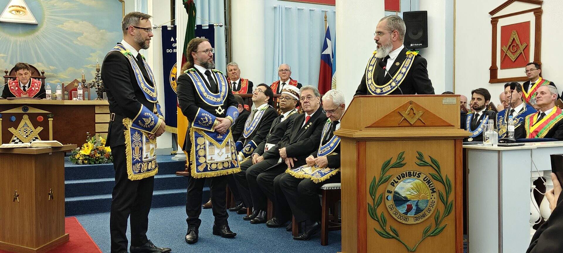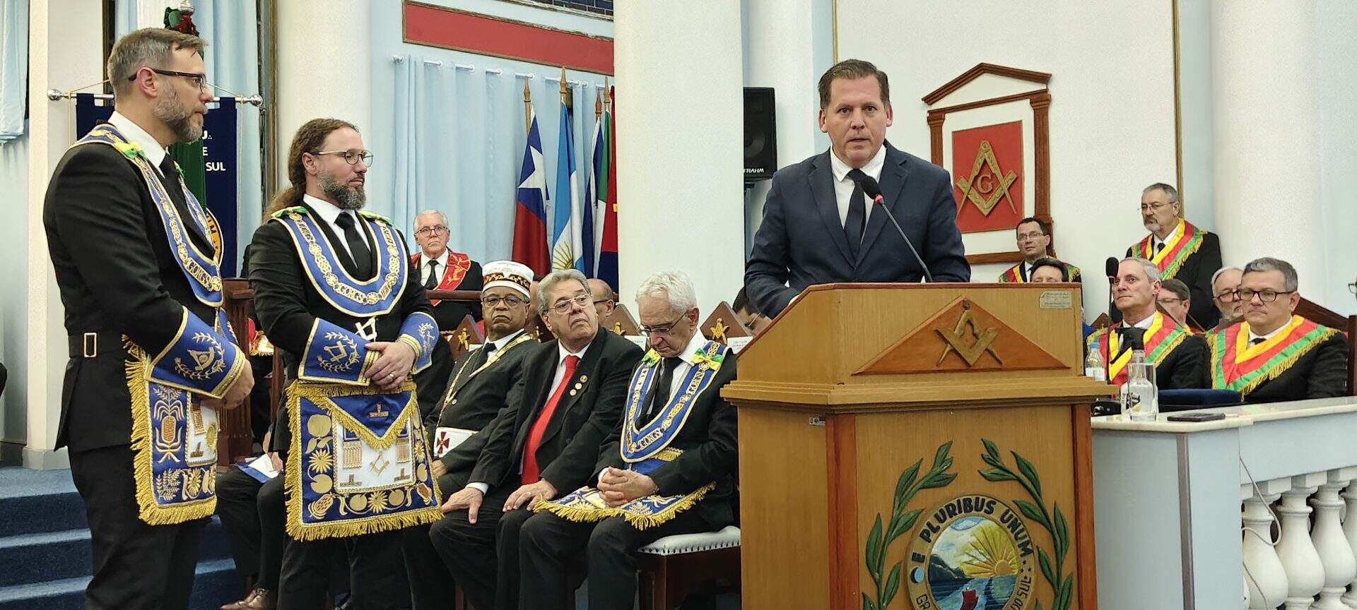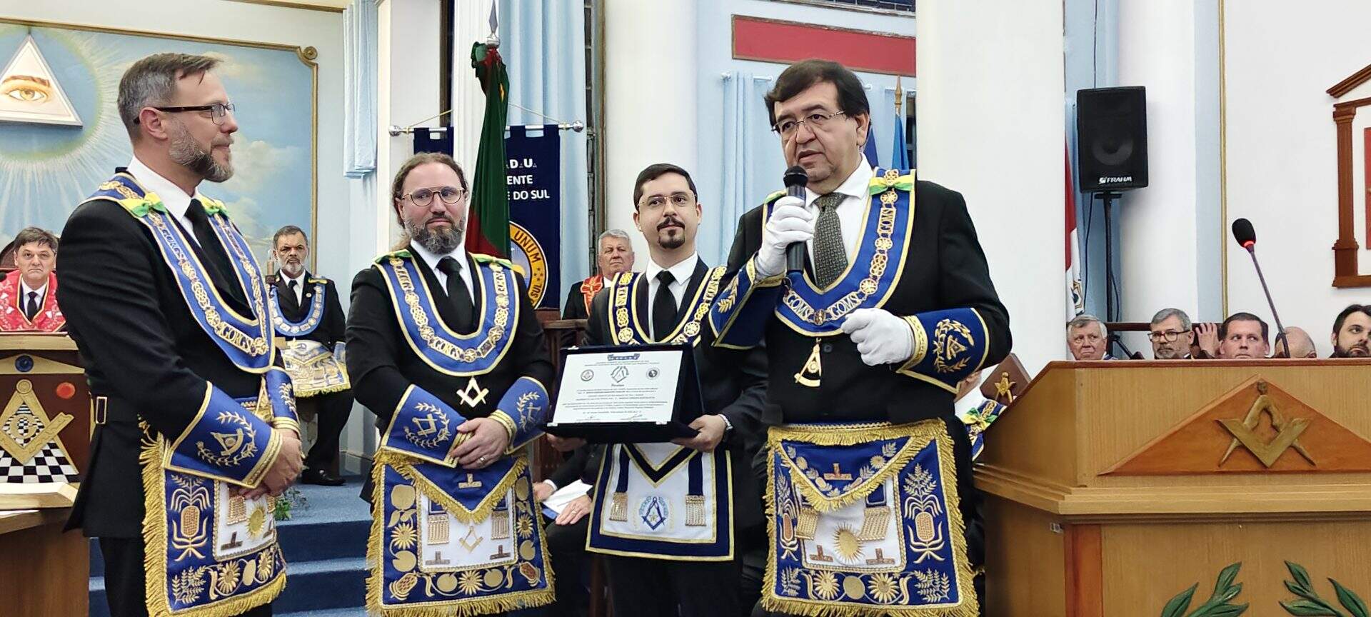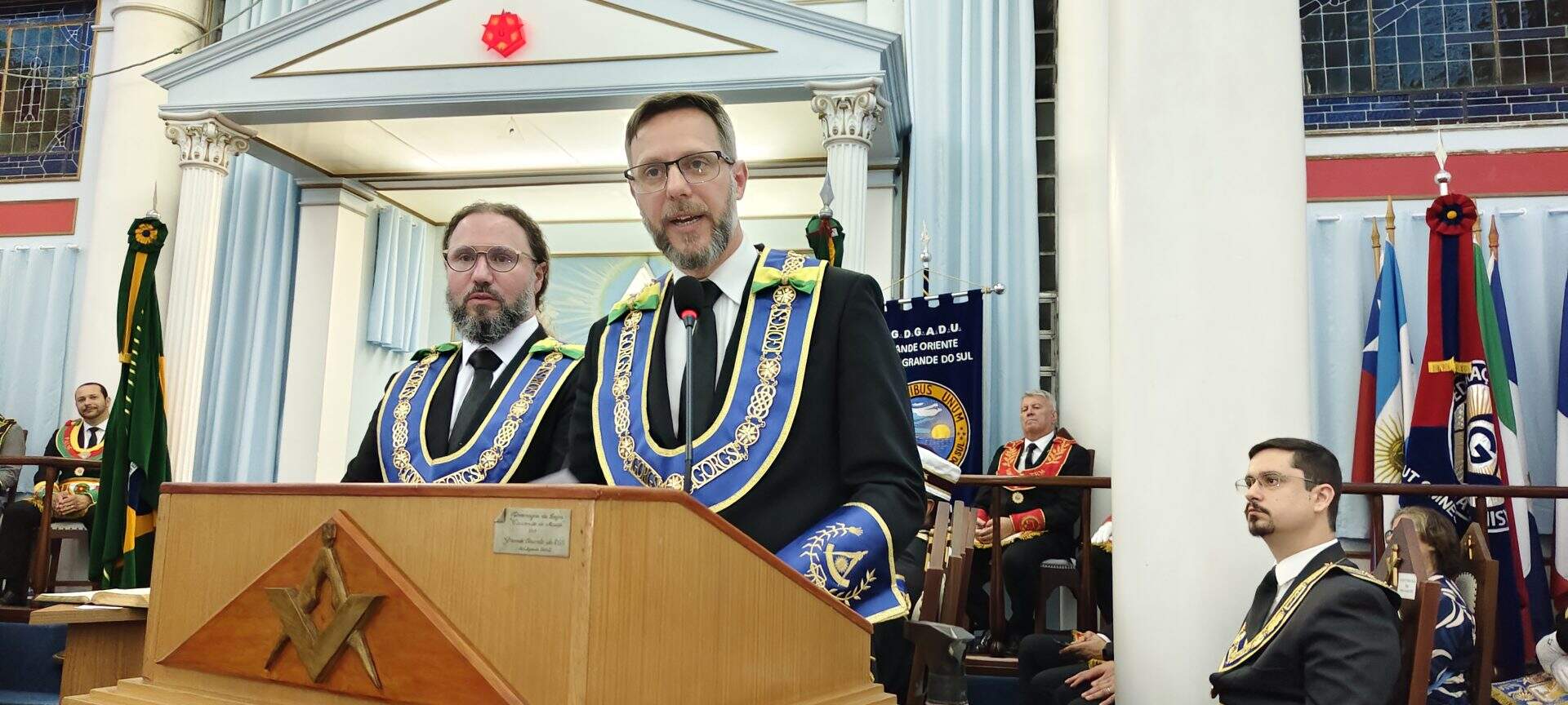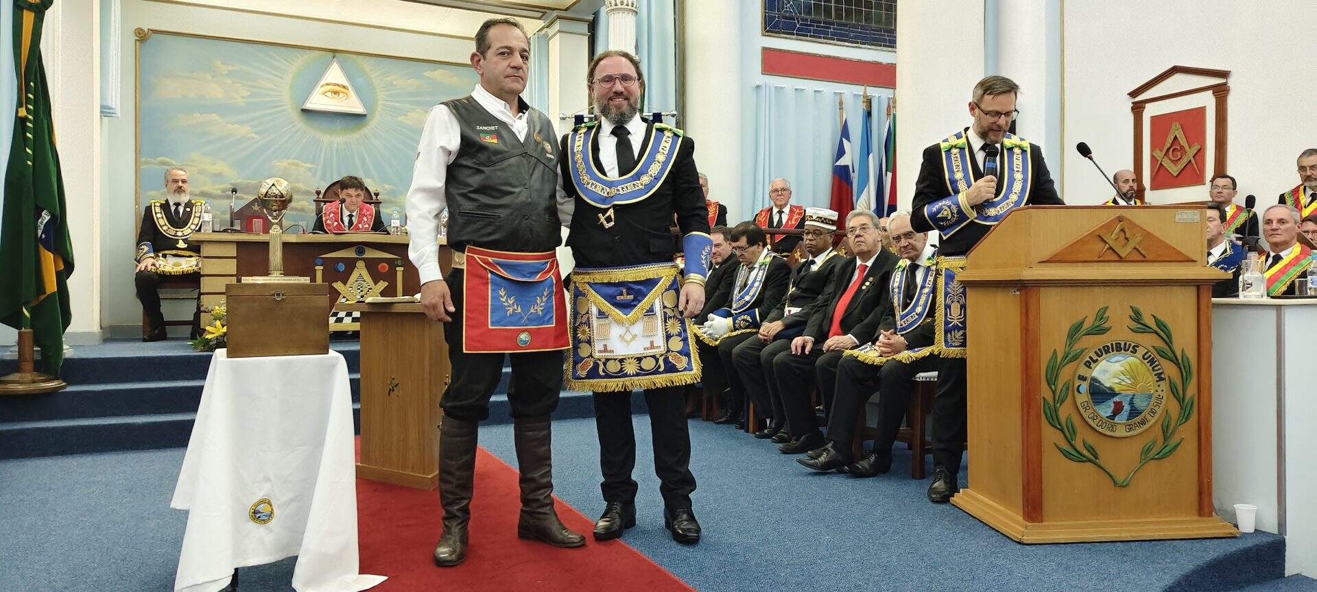 Ao lado do Sereníssimo Grão-Mestre Adjunto, Cássio Fernando Willrich, Bortolotto também ressaltou os avanços institucionais da potência, como a modernização dos sistemas administrativos, a ampliação das ações sociais e o fortalecimento do diálogo interpotências, que tem aproximado diferentes correntes maçônicas em torno de causas comuns.