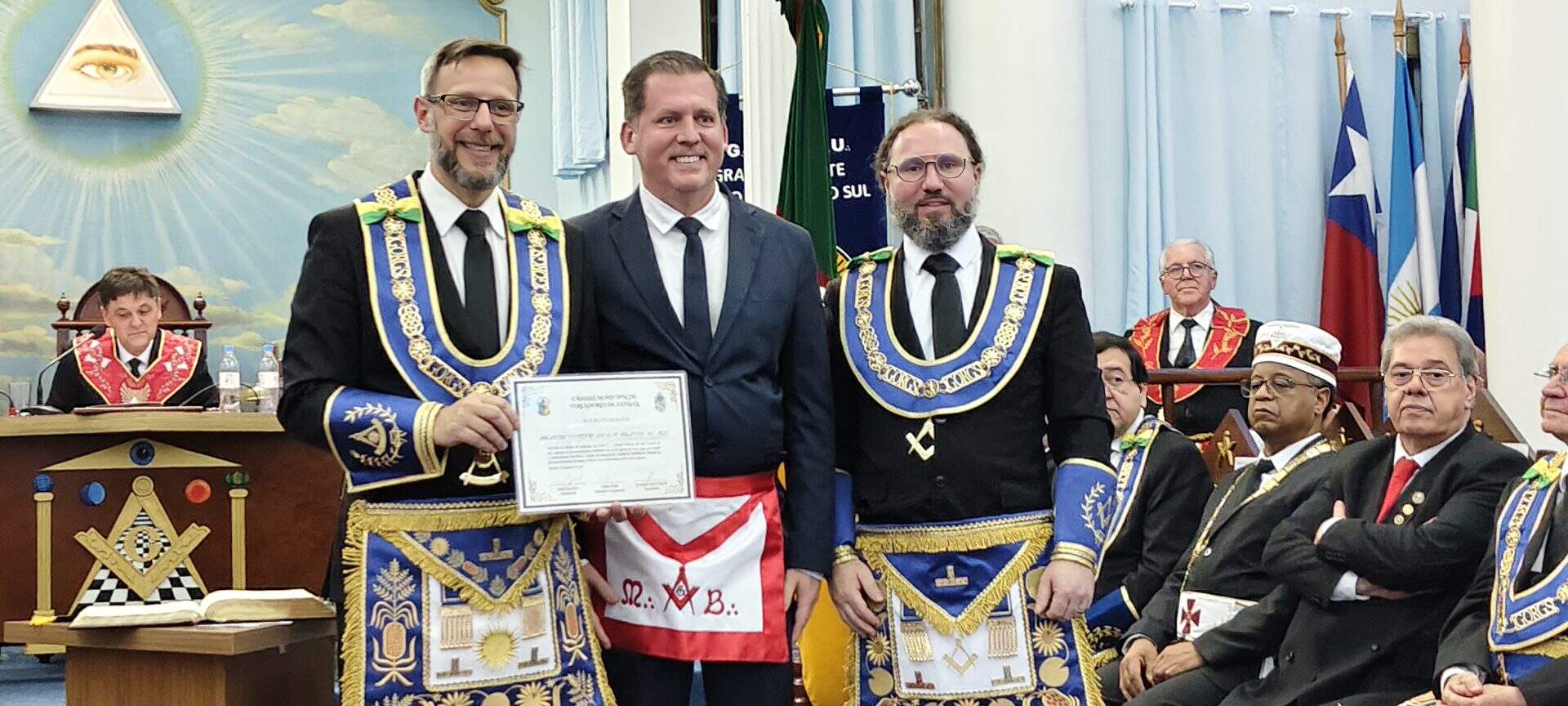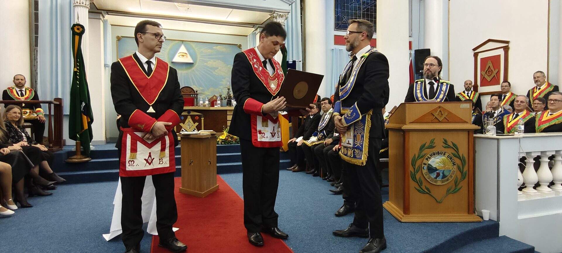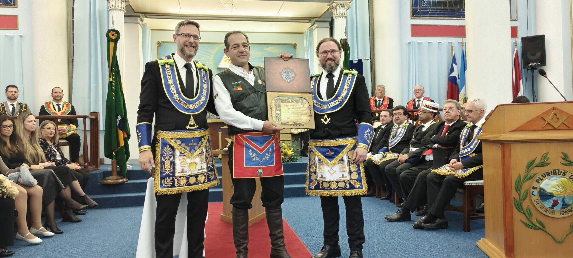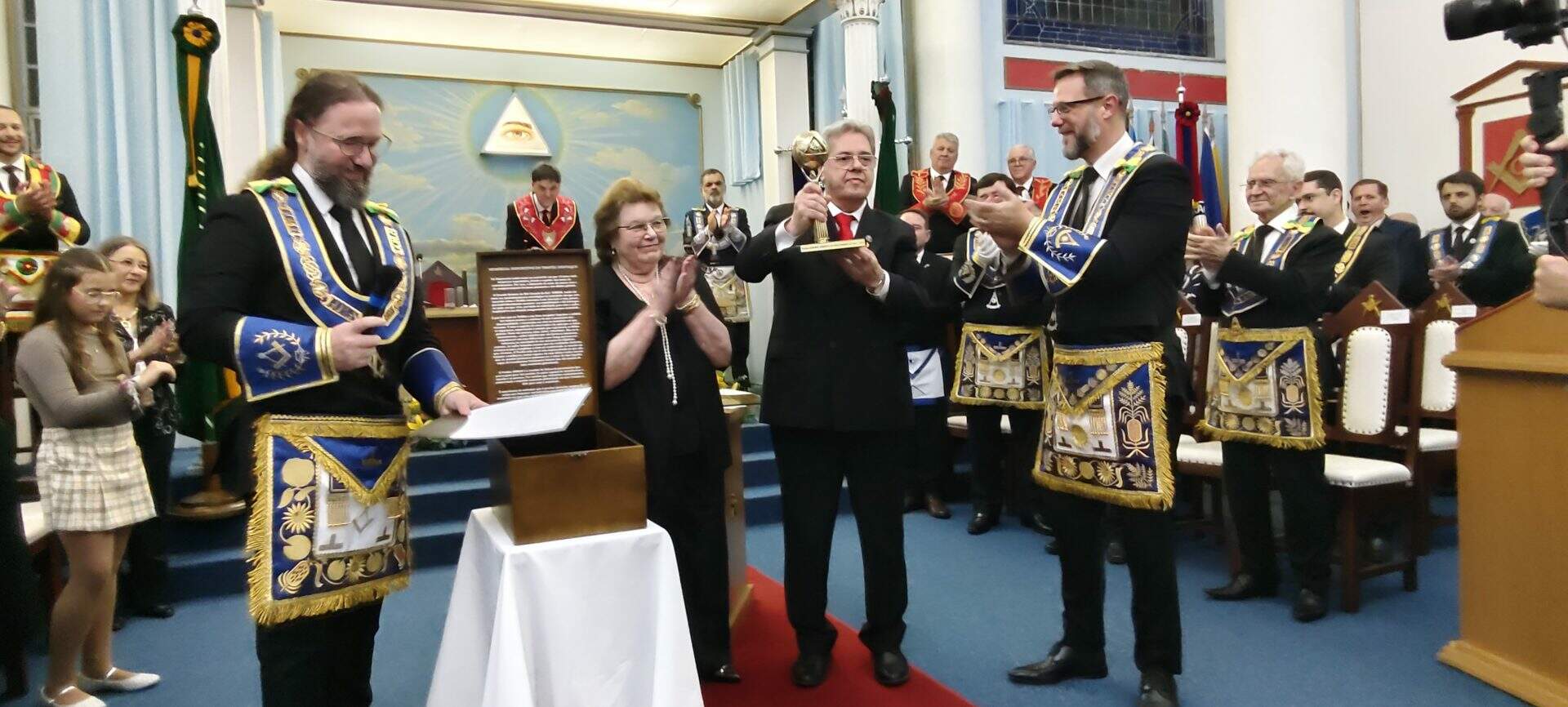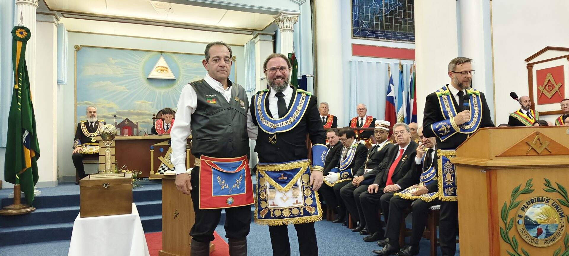 Ao lado do Sereníssimo Grão-Mestre Adjunto, Cássio Fernando Willrich, Bortolotto também ressaltou os avanços institucionais da potência, como a modernização dos sistemas administrativos, a ampliação das ações sociais e o fortalecimento do diálogo interpotências, que tem aproximado diferentes correntes maçônicas em torno de causas comuns.