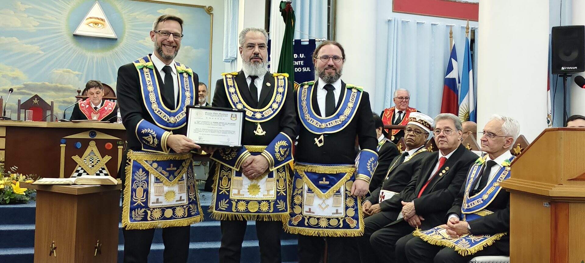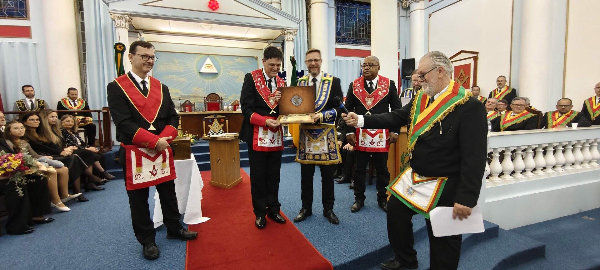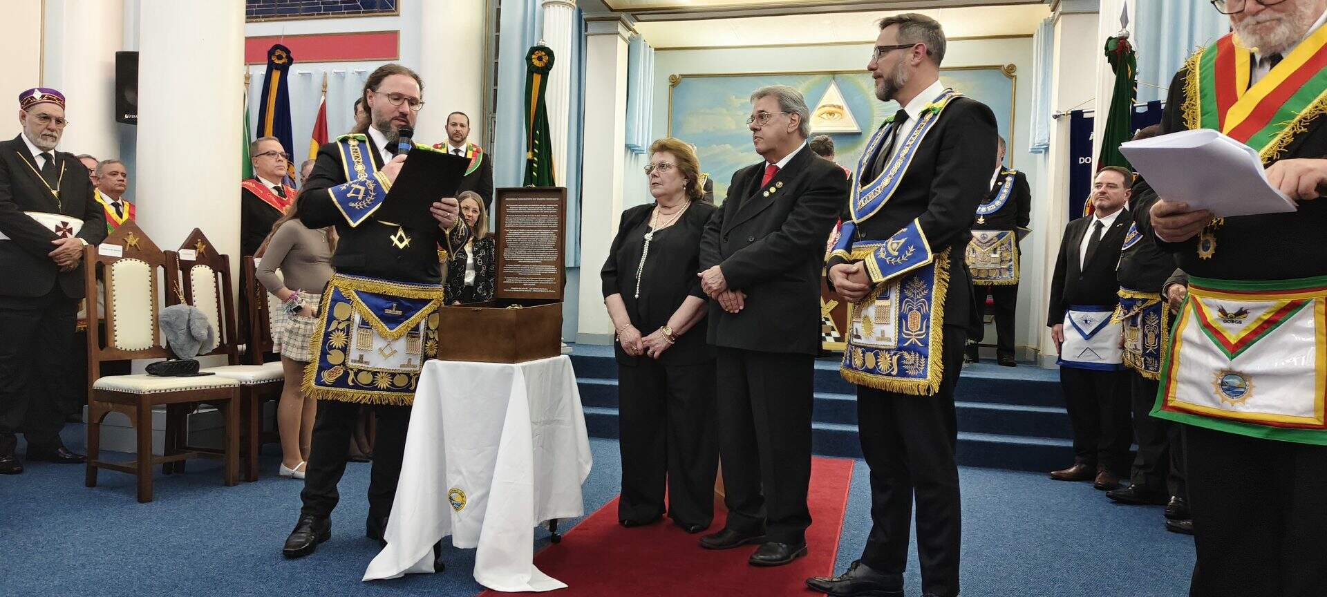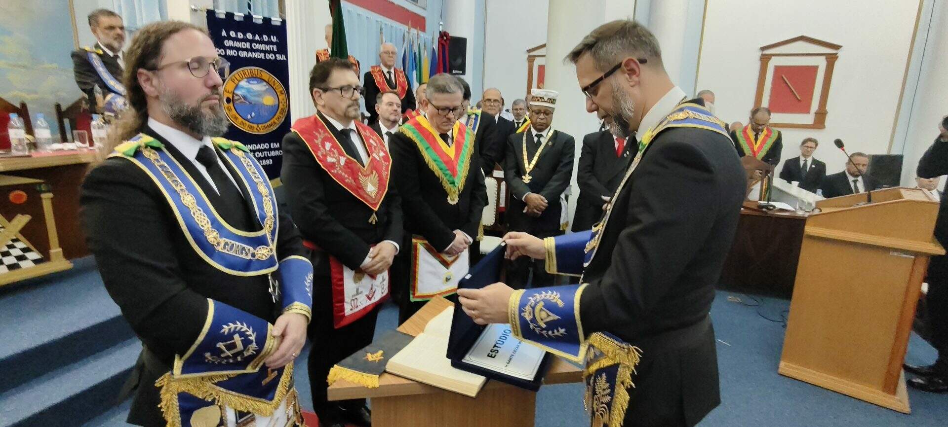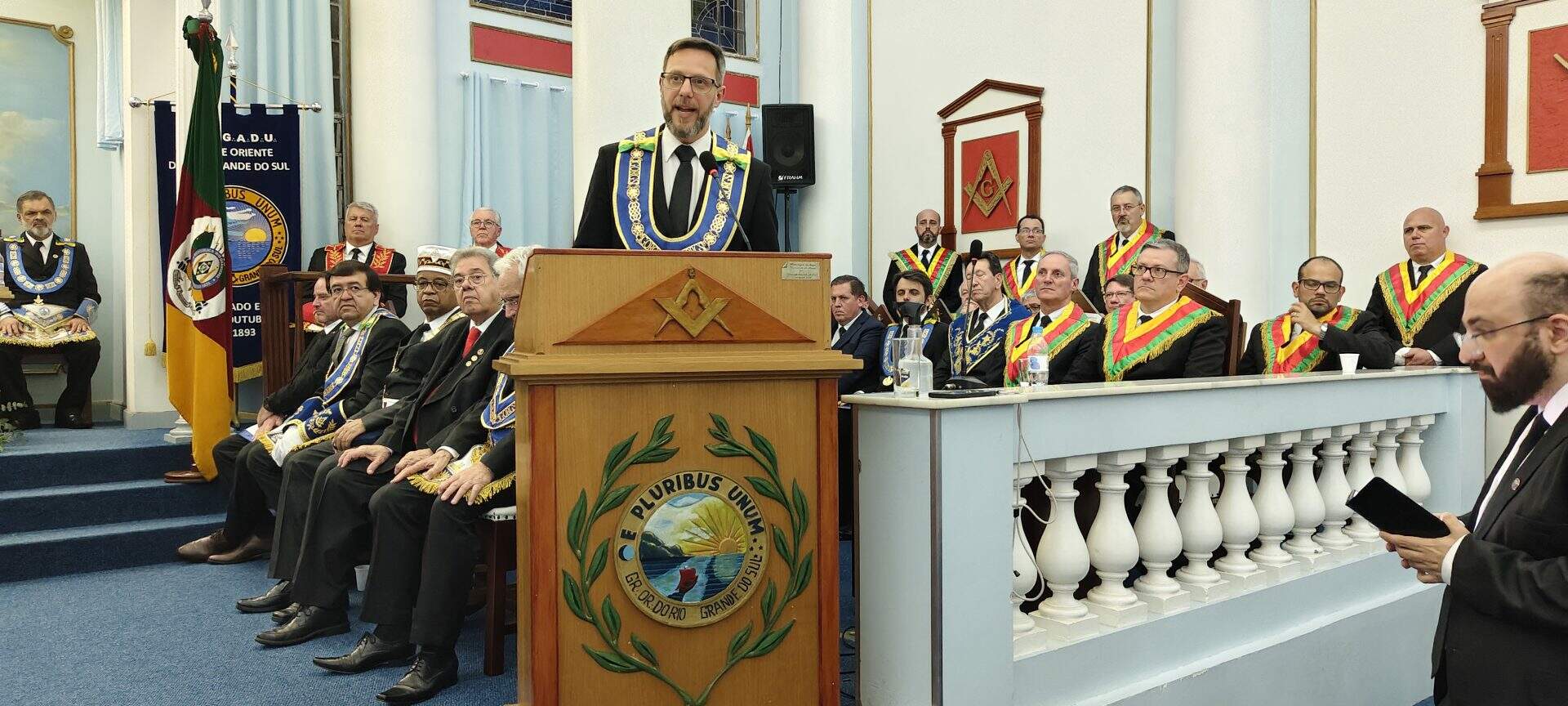 Ao lado do Sereníssimo Grão-Mestre Adjunto, Cássio Fernando Willrich, Bortolotto também ressaltou os avanços institucionais da potência, como a modernização dos sistemas administrativos, a ampliação das ações sociais e o fortalecimento do diálogo interpotências, que tem aproximado diferentes correntes maçônicas em torno de causas comuns.