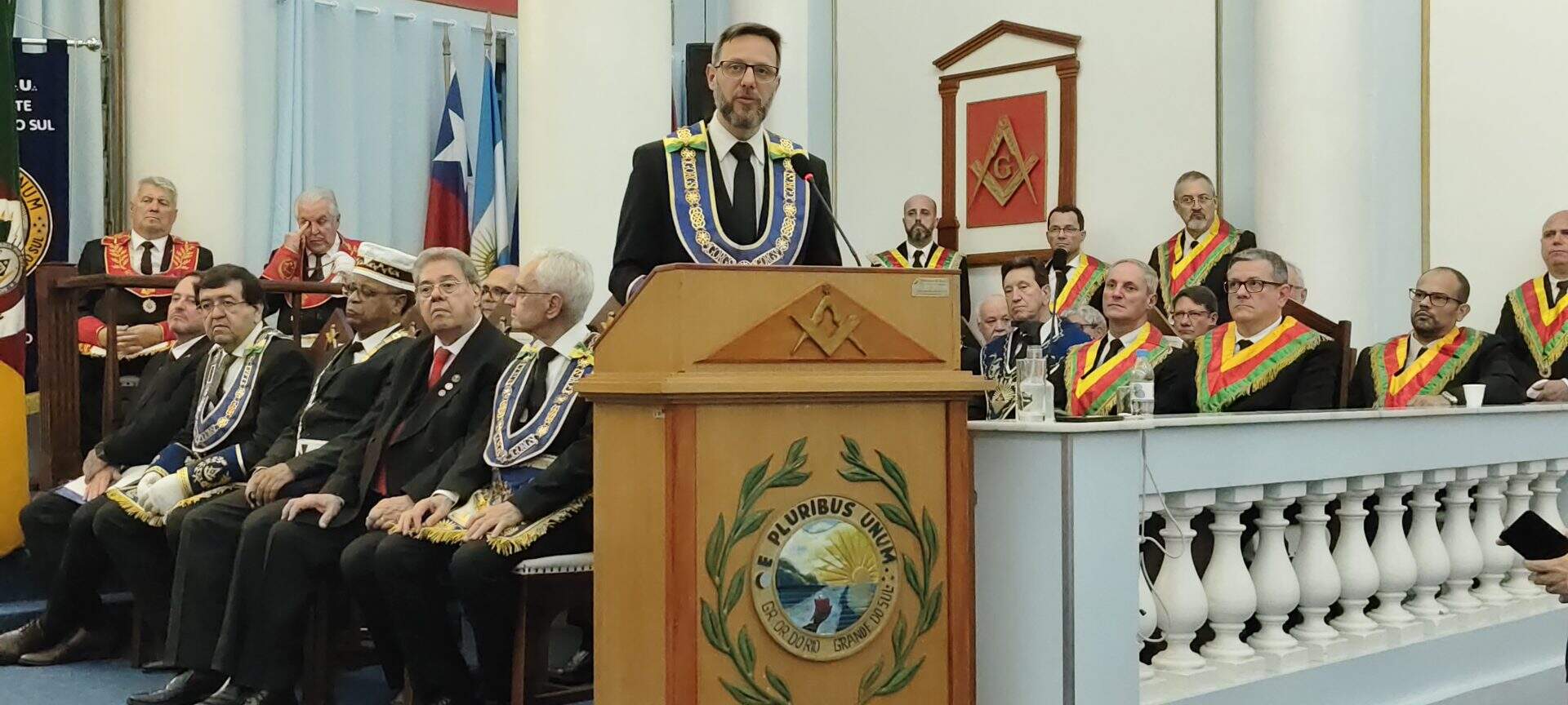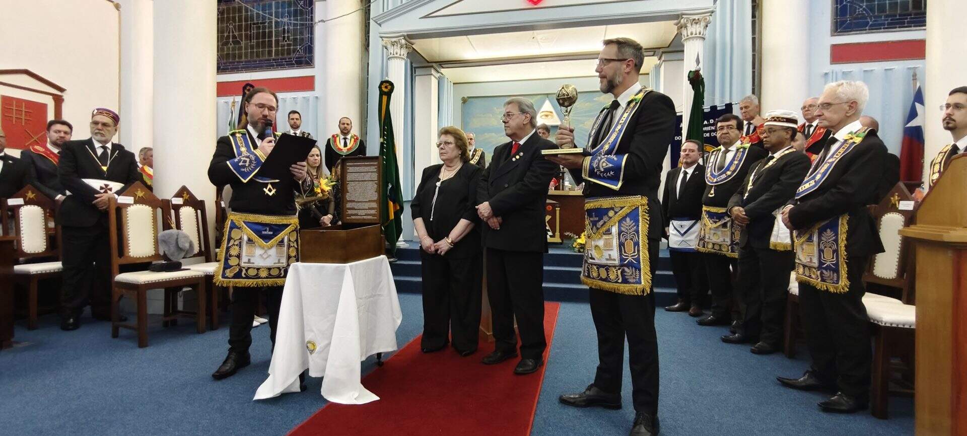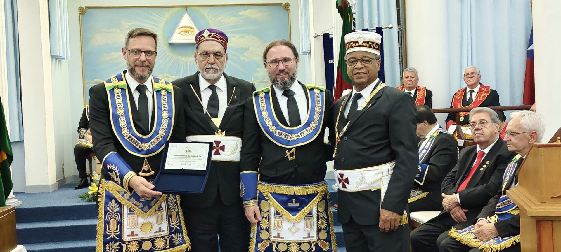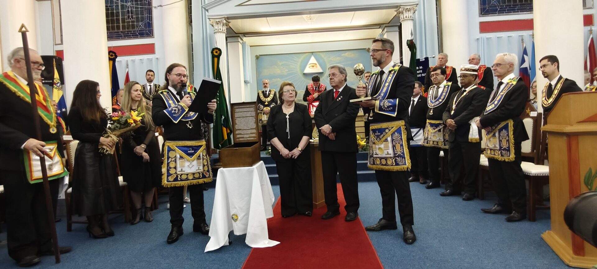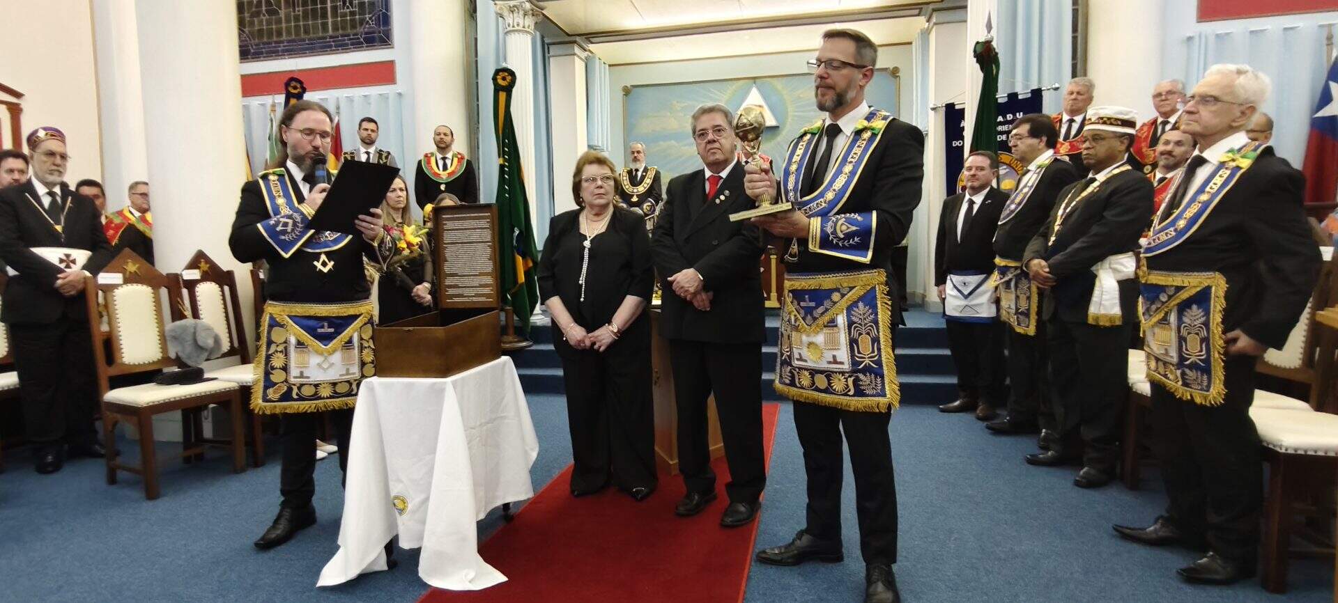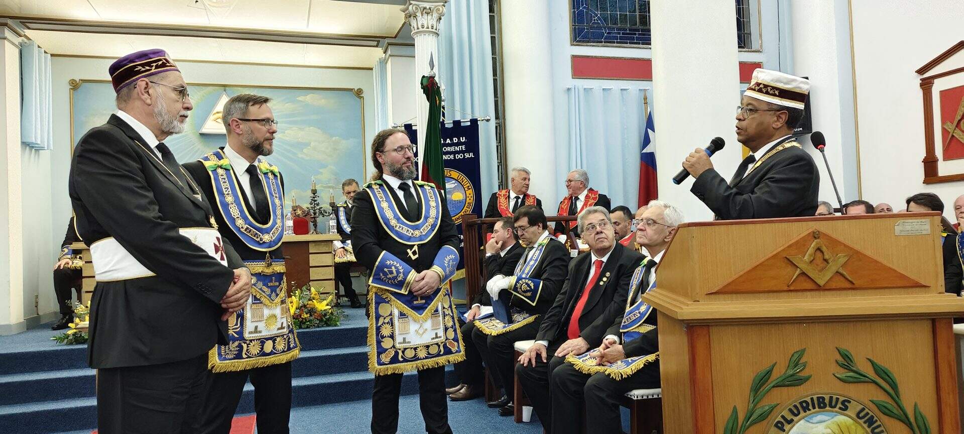 Ao lado do Sereníssimo Grão-Mestre Adjunto, Cássio Fernando Willrich, Bortolotto também ressaltou os avanços institucionais da potência, como a modernização dos sistemas administrativos, a ampliação das ações sociais e o fortalecimento do diálogo interpotências, que tem aproximado diferentes correntes maçônicas em torno de causas comuns.