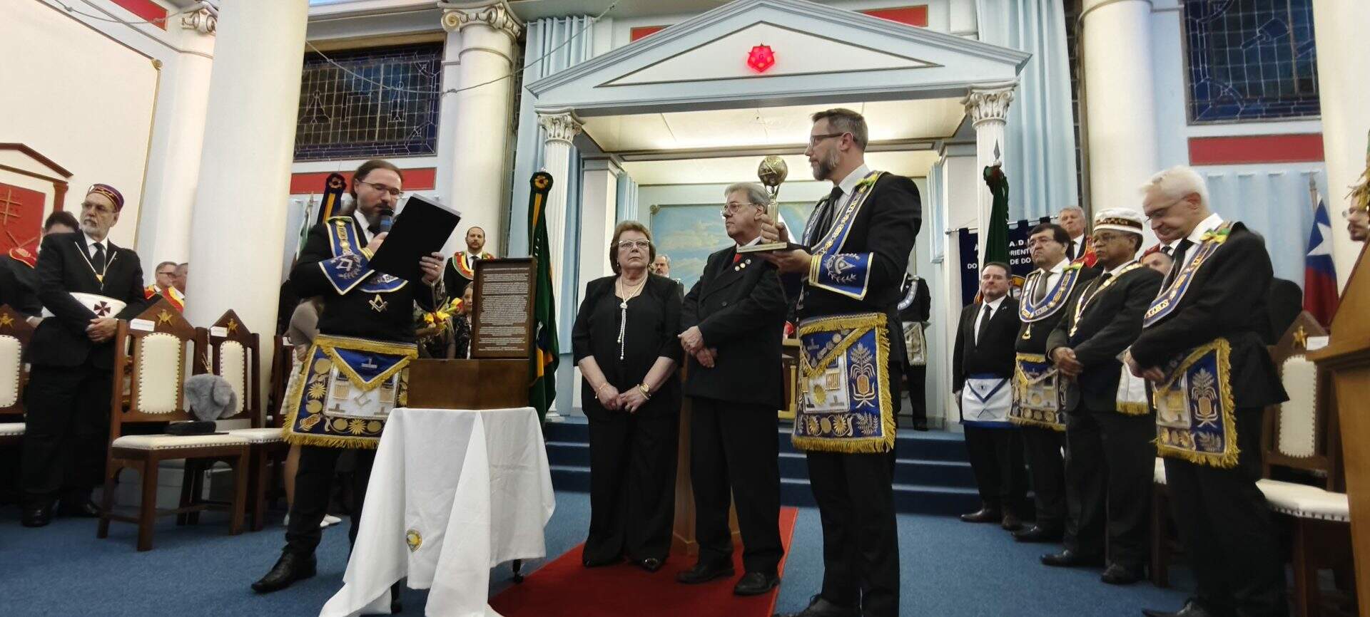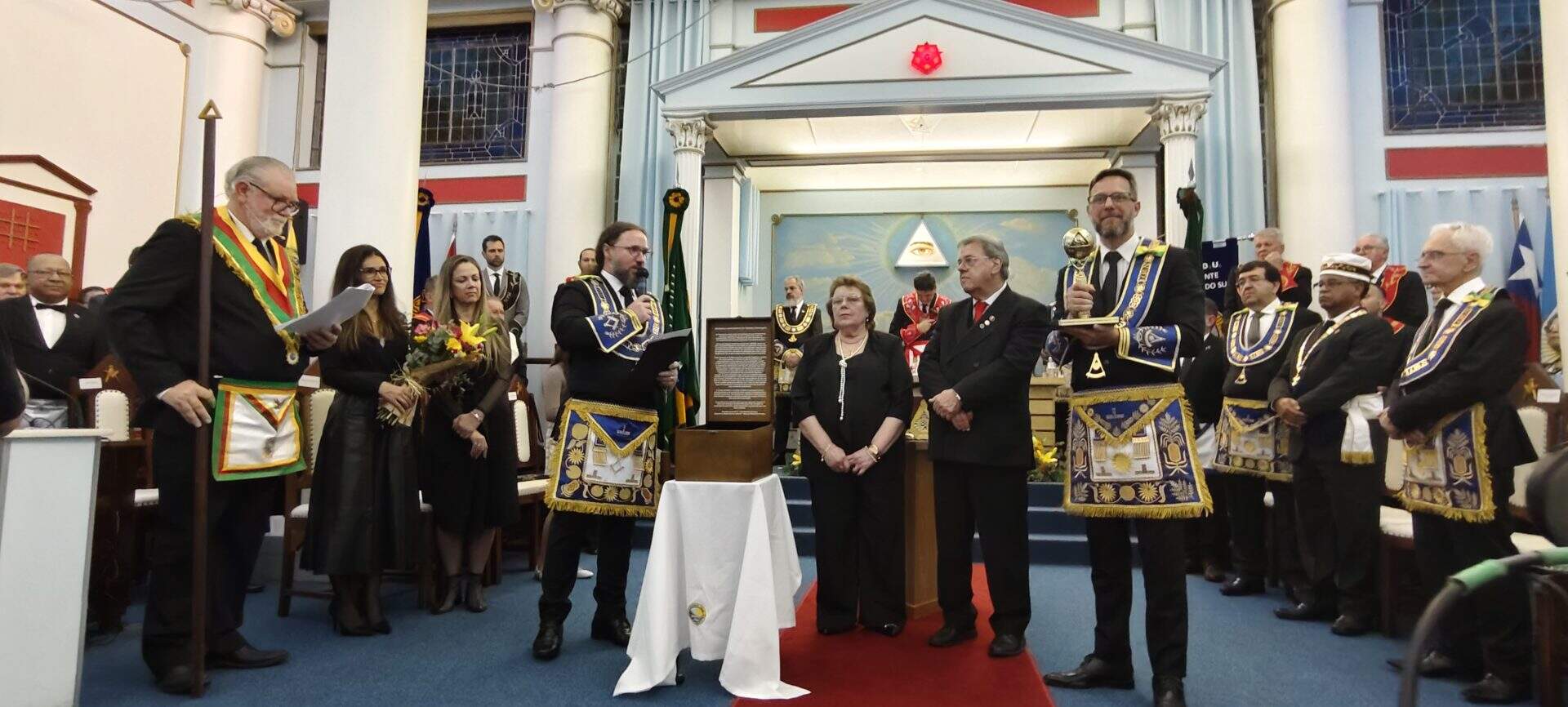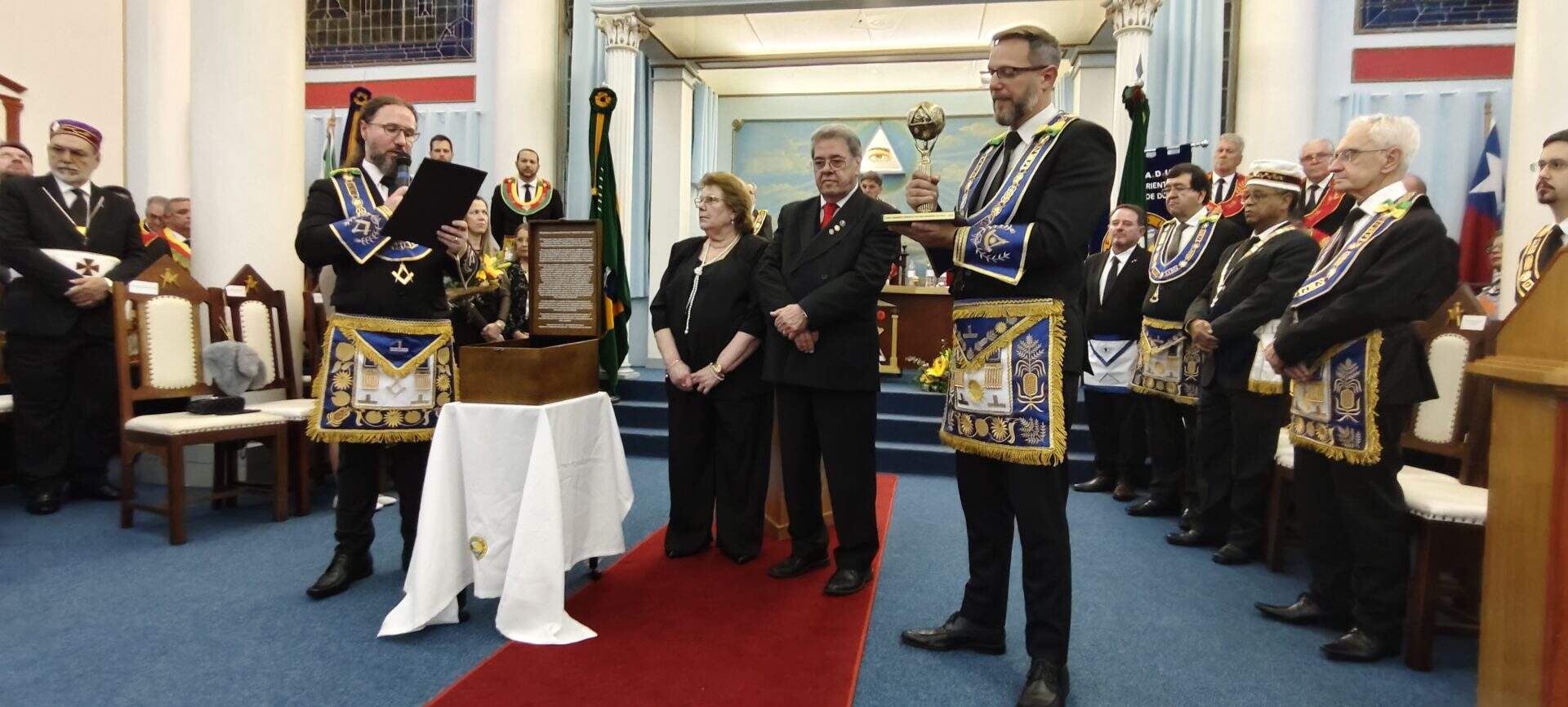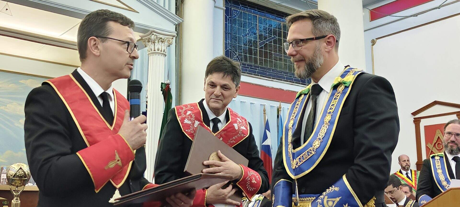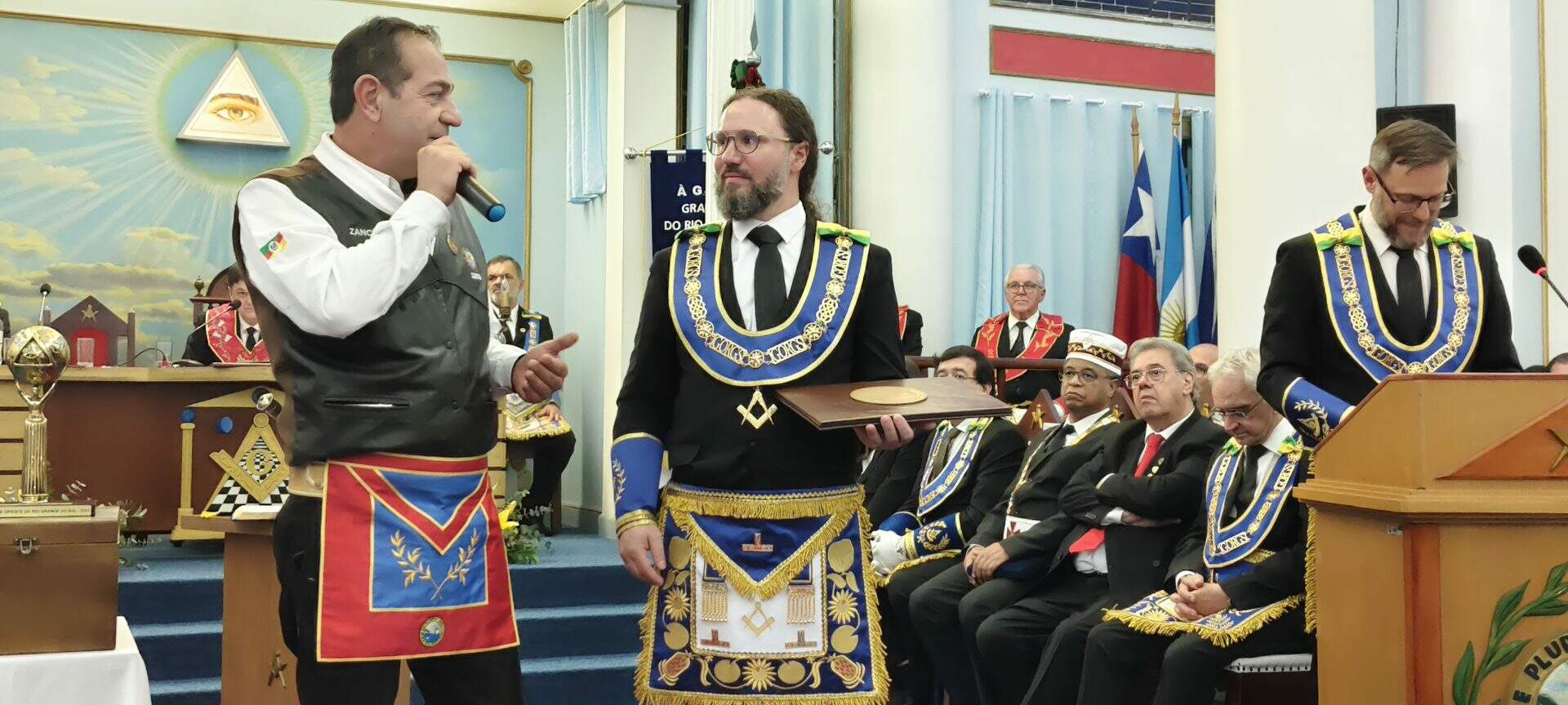 Ao lado do Sereníssimo Grão-Mestre Adjunto, Cássio Fernando Willrich, Bortolotto também ressaltou os avanços institucionais da potência, como a modernização dos sistemas administrativos, a ampliação das ações sociais e o fortalecimento do diálogo interpotências, que tem aproximado diferentes correntes maçônicas em torno de causas comuns.