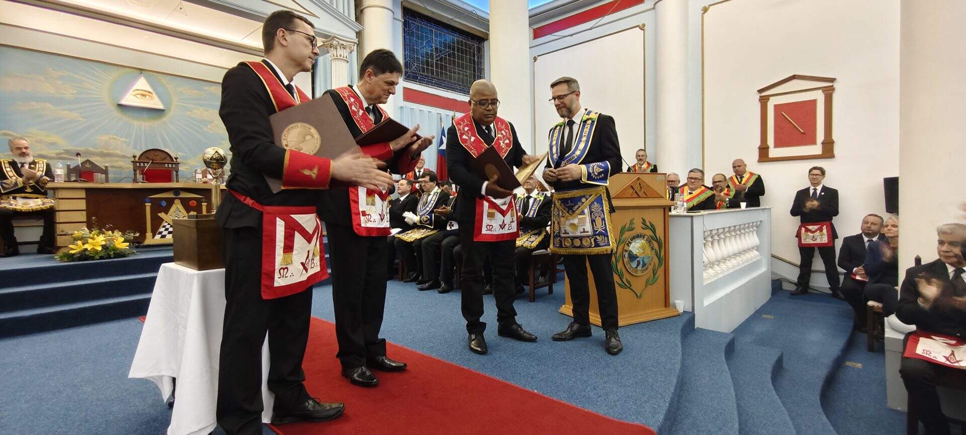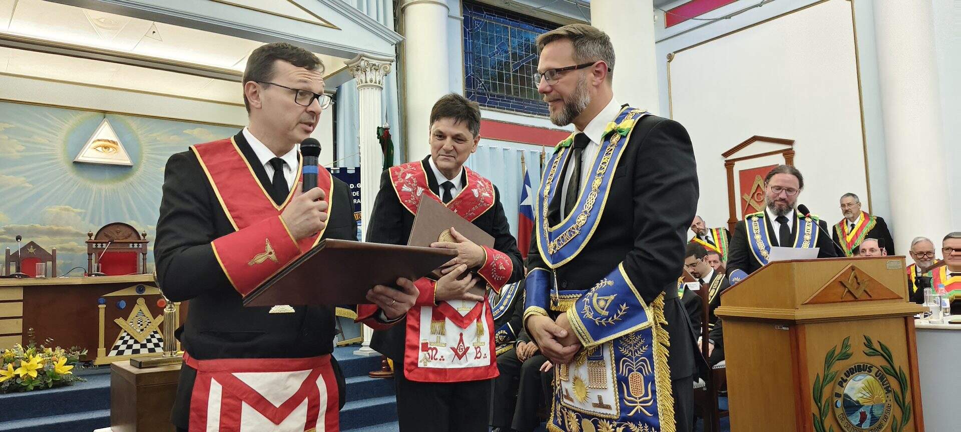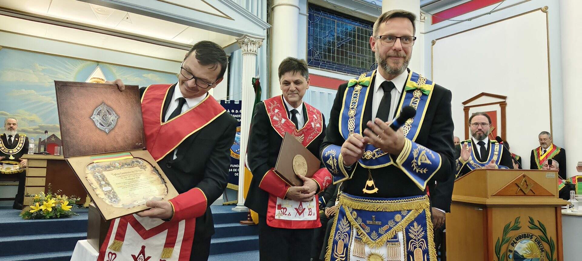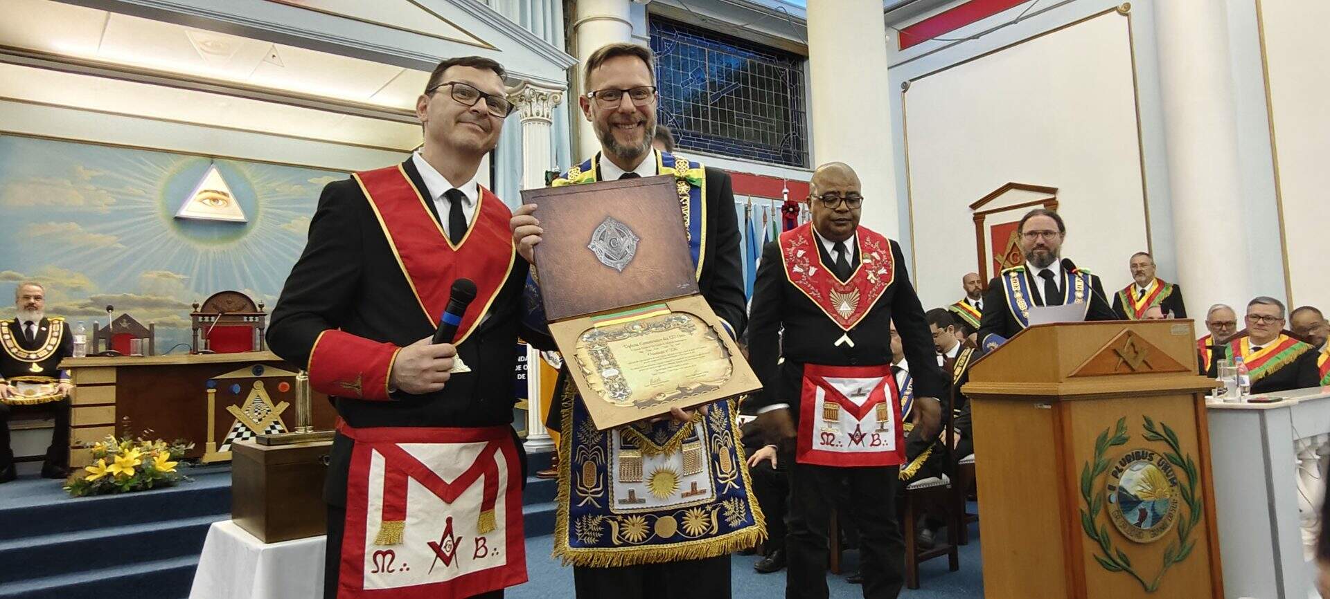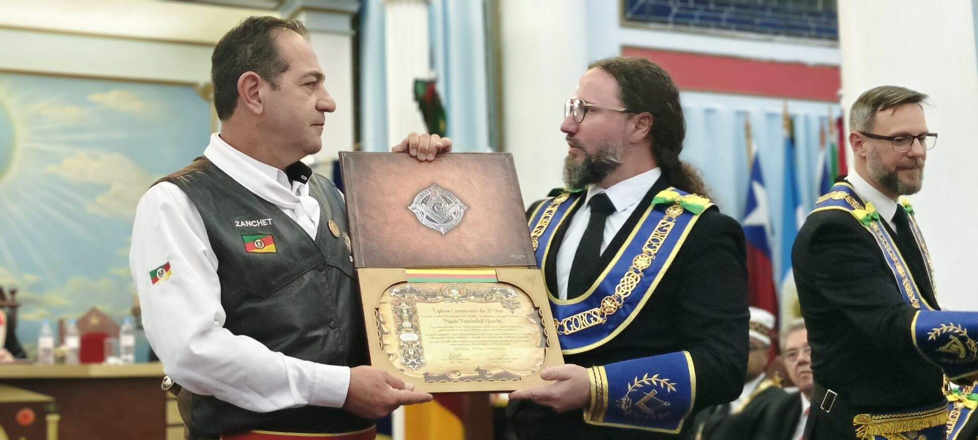 Ao lado do Sereníssimo Grão-Mestre Adjunto, Cássio Fernando Willrich, Bortolotto também ressaltou os avanços institucionais da potência, como a modernização dos sistemas administrativos, a ampliação das ações sociais e o fortalecimento do diálogo interpotências, que tem aproximado diferentes correntes maçônicas em torno de causas comuns.