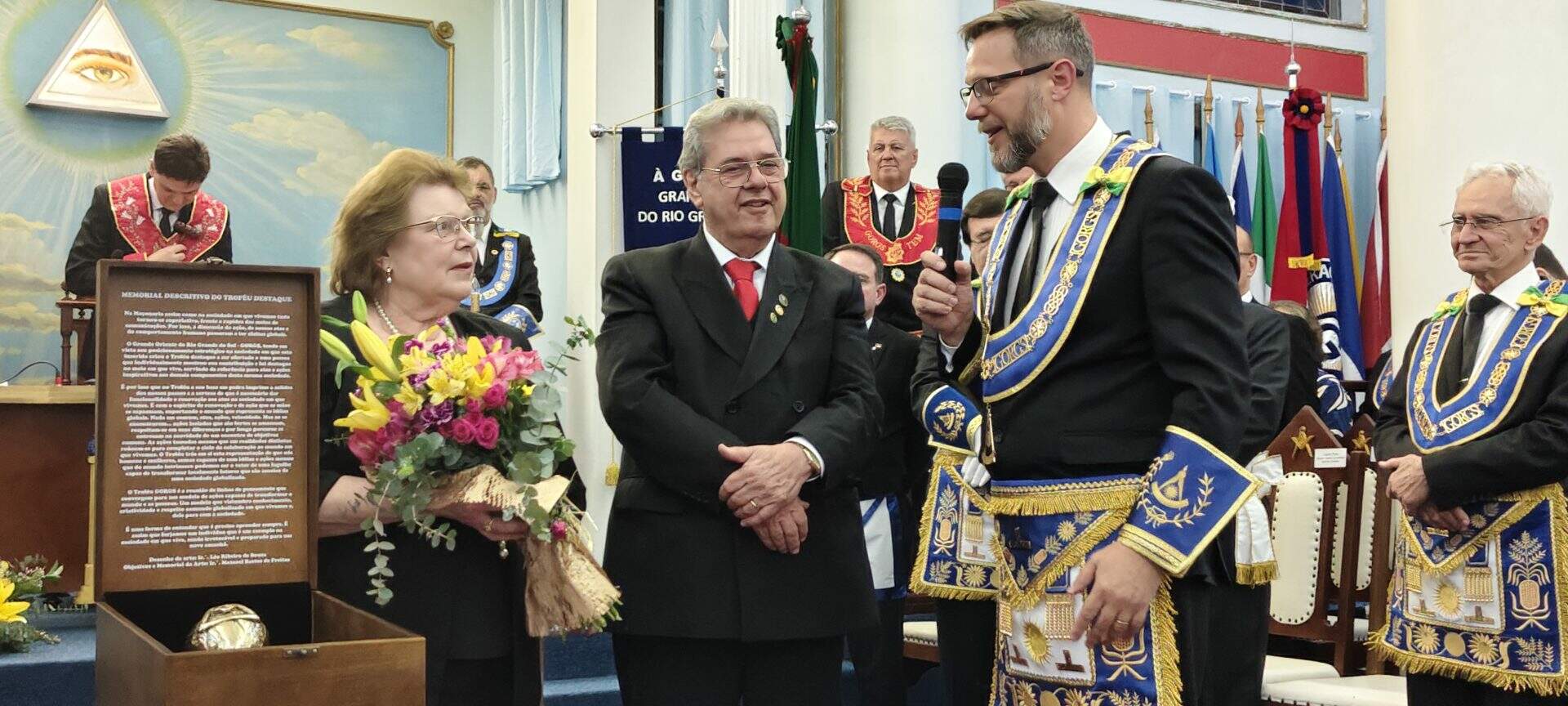 Além da entrega do troféu, o evento contou com apresentações artísticas dos vencedores da 10ª Tertúlia Maçônica da Poesia Crioula, entre eles o Irmão Cândido Brasil e a artista Tatiane da Rosa Crestani, que emocionaram o público com versos que exaltam a cultura gaúcha e os princípios da Ordem.