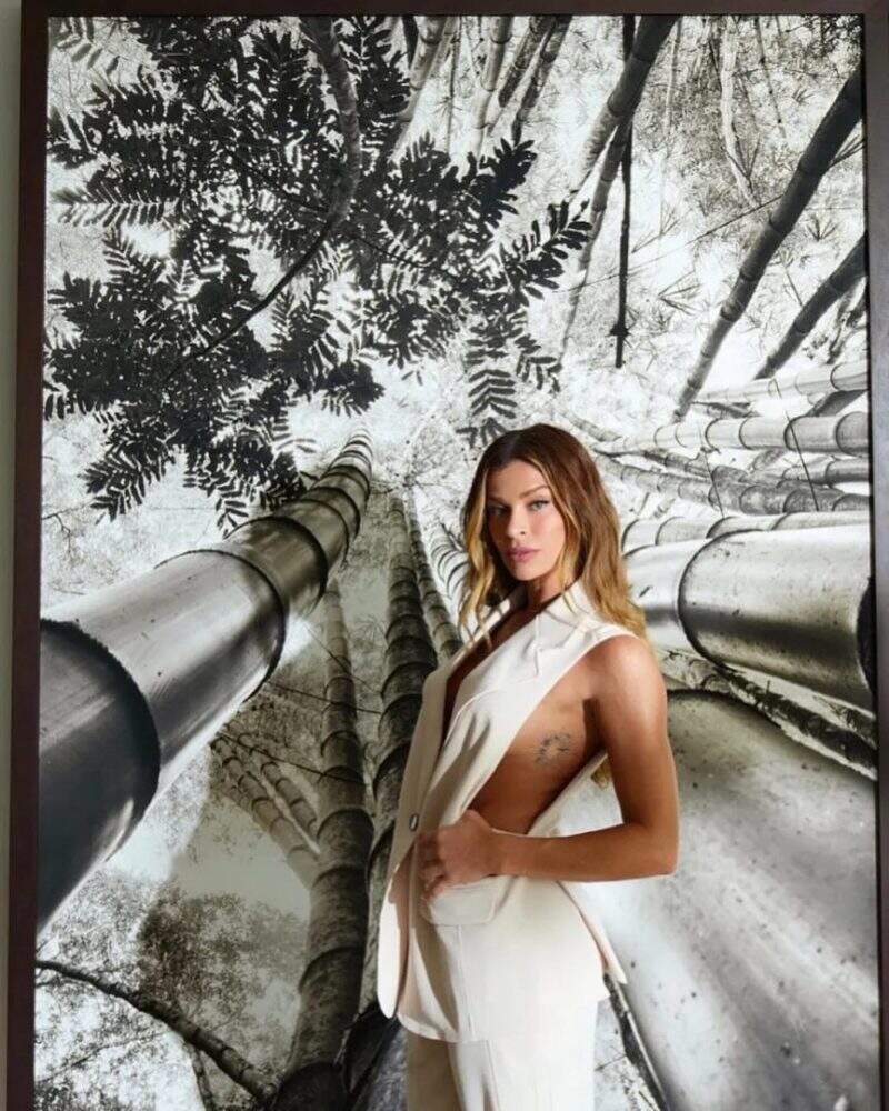 Além disso, Grazi também compartilhou cliques de um ensaio fotográfico, em que aparece arrasadora como sempre. Em um dos looks e sem sutiã, ela usou um modelito branco cavado nas laterais, que deixou à mostra algumas de suas tatuagens.