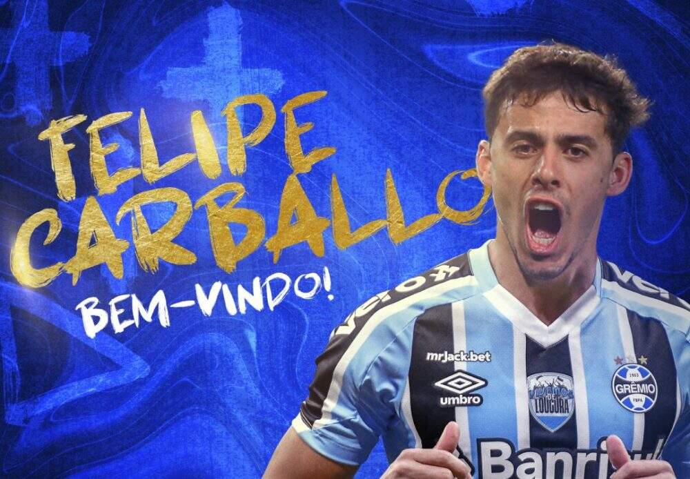 O meio-campista uruguaio Felipe Carballo, um dos destaques do futebol uruguaio da última temporada, foi anunciado como o mais novo reforço do Grêmio. Aos 26 anos, ele assina contrato por quatro anos. A apresentação do atleta acontece nesta quarta-feira (21), às 18h, na Arena do Grêmio.