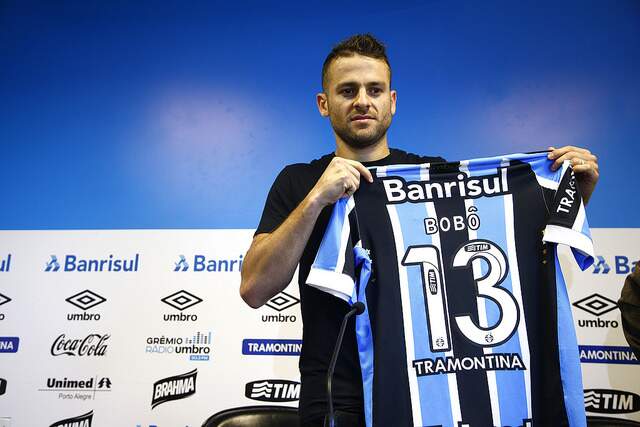 A necessidade de trazer um centroavante foi preenchida. Bobô, que estava havia 12 anos na Turquia, já foi apresentado oficialmente pelo Grêmio nesta segunda-feira (27) no CT Luiz Carvalho, vestindo a camisa 13. Sua entrevista foi no fim de tarde, mas Bobô já trabalhou com seus novos companheiros no treino mais cedo.