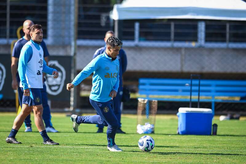 Foto: Lucas Uebel/GrêmioO Grêmio acertou o empréstimo do atacante uruguaio Matías Arezo para o Peñarol. O jogador já está retornando à capital uruguaia para tratar de sua apresentação ao novo clube. Titular na goleada sofrida diante do Cruzeiro, Arezo atuará pelo clube de Montevidéu até 31 de dezembro de 2025.