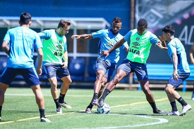 Foto: Lucas Uebel/GrêmioNa manhã desta quarta-feira (8), o elenco do Grêmio se reuniu no CT Luiz Carvalho, em Porto Alegre, para mais uma sessão de treinamentos focada em aspectos técnicos e de posicionamento. Sob o comando da comissão técnica, os jogadores participaram de atividades voltadas à construção de jogadas, movimentação ofensiva e organização defensiva.