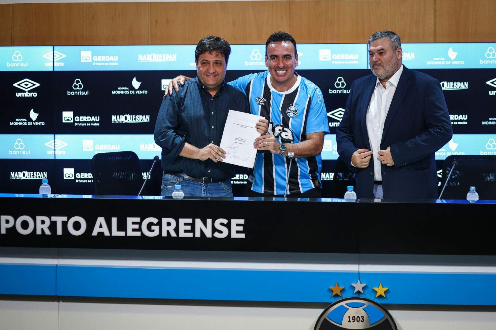 O ato contou com a presença do presidente Alberto Guerra, do vice-presidente e coordenador do processo de transição, Eduardo Magrisso e do empresário e gremista Marcelo Marques, responsável por viabilizar a operação que transfere a gestão da Arena ao Grêmio.