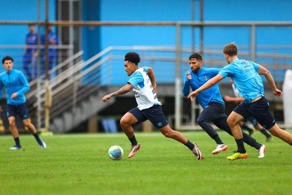 Renato Portaluppi, que não estará no comando da equipe contra o Botafogo devido a suspensão, assumiu a equipe e os dividiu em dois grupos para atividade de ataque contra defesa, troca de passes, movimentações e chutes ao gol.