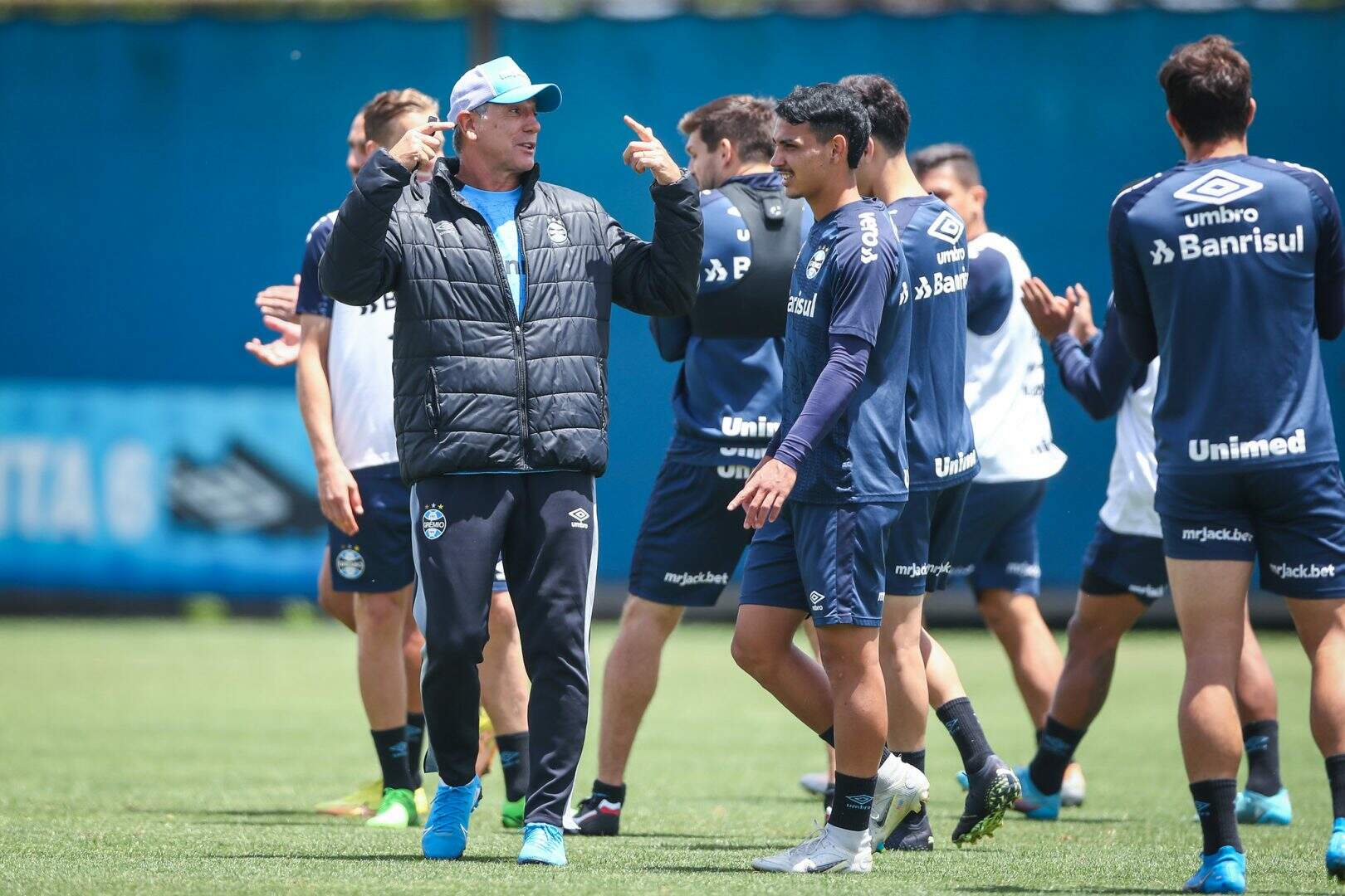 Após o aquecimento e o trabalho físico comandado pelo preparador Réverson Pimentel, o treinador Renato Portaluppi dividiu o elenco e comandou um treino mais descontraído em uma das metades do campo de muita movimentação e entrega dos jogadores.