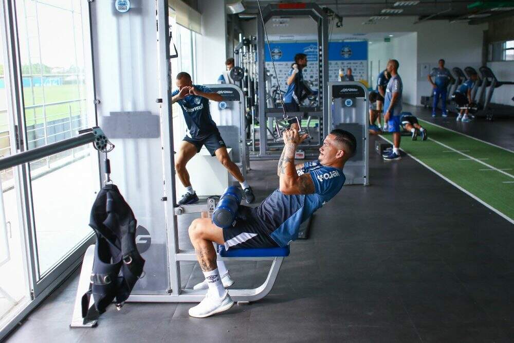 O treino foi destinado apenas a trabalhos físicos. Divididos em dois grupos, os jogadores permaneceram na academia, realizando exercícios de fortalecimento e condicionamento. Depois foram a campo para um circuito de corridas.