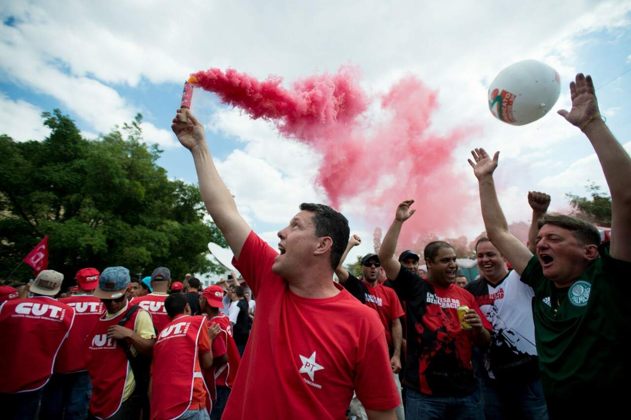 Enquanto isso, em clima de festa, manifestantes tiraram fotos com bandeiras do PT, beberam cerveja e e comeram churrasco.