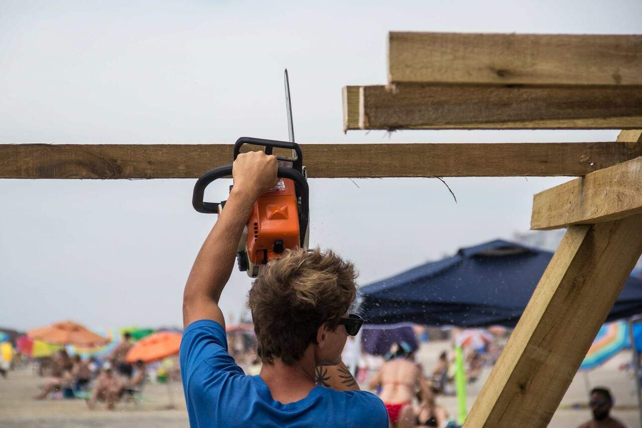 Verão Pampa 2017 – Guaritas de salva-vidas são confeccionadas em Capão da Canoa, apóes ressaca do mar . FOTO – Jackson Ciceri
