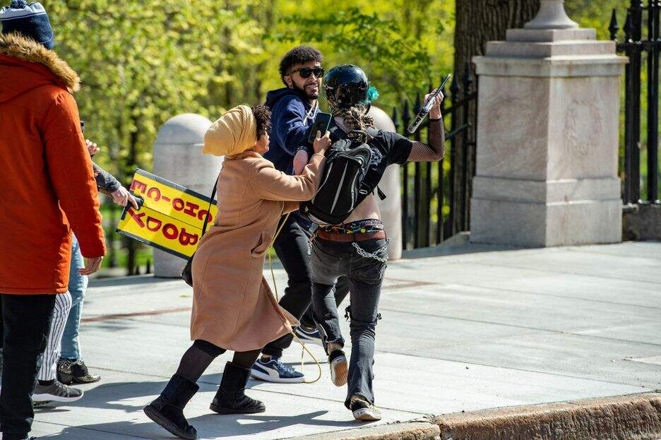 Ativistas a favor do aborto e contra brigam durante manifestação em frente à Câmara dos Deputados de Massachusetts, em Boston.