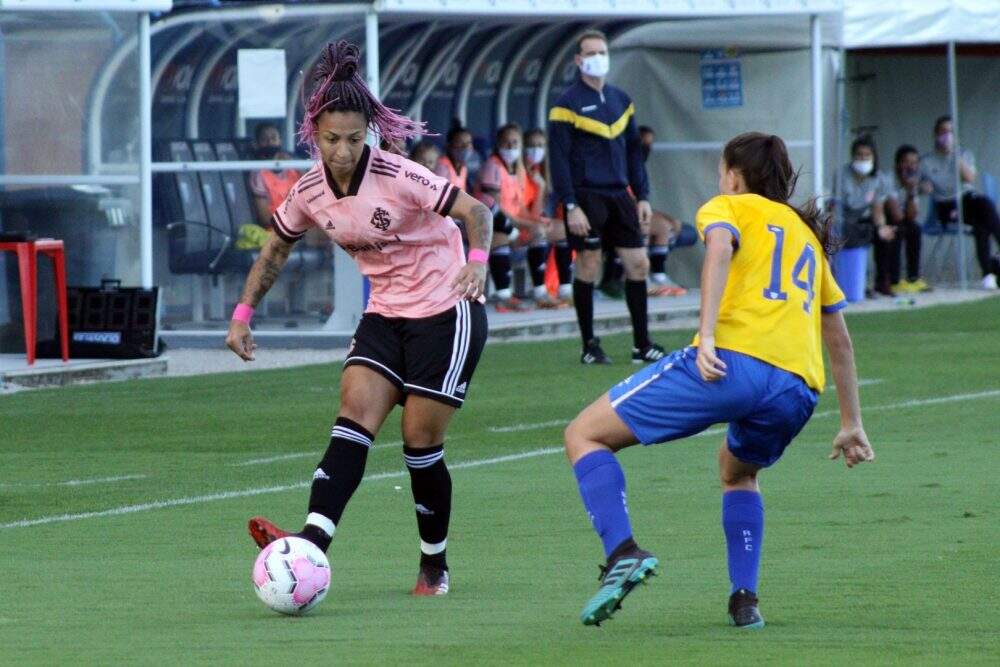 Porém, as adversárias se recuperaram rapidamente do gol sofrido e oito minutos depois, Pat faz o lançamento para Lelê, que na corrida, ganhou da zaga colorada e deslocou para Yasmim empatar a partida. E não parou por aí, nos minutos finais do primeiro tempo, Simeia virou o jogo para as catarinenses em cobrança de escanteio.