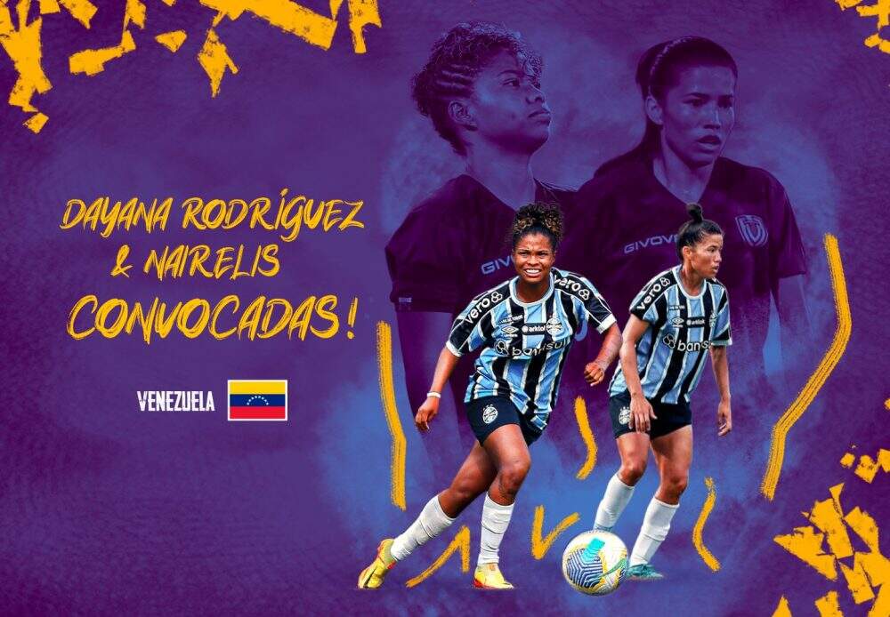 As Gurias Gremistas têm mais duas jogadoras convocadas para defender seu país na próxima data Fifa. A técnica da seleção venezuelana de futebol feminino, Pamela Conti, chamou novamente a meio-campista Dayana Rodríguez e a lateral Nairelis para amistosos na cidade de Barquisimeto, contra a Colômbia.