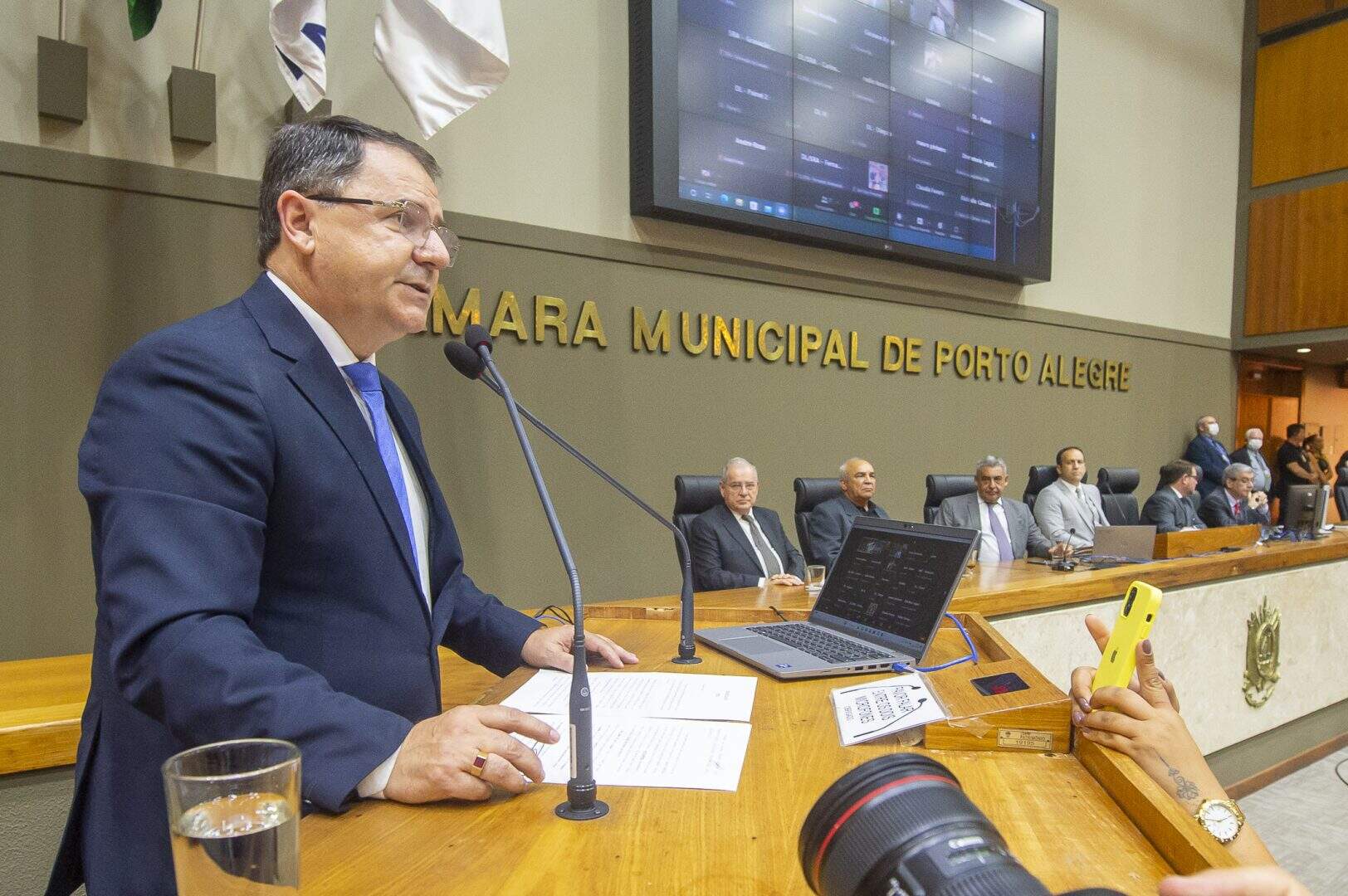 Em seu discurso na cerimônia de posse da nova Mesa Diretora da Câmara Municipal, o prefeito de Porto Alegre, Sebastião Melo (MDB), destacou a colaboração do Legislativo para a discussão e aprovação de projetos de lei de interesse da cidade enviados pelo Executivo em 2022. Melo lembrou que a Câmara não se recusou a enfrentar temas controversos como a reforma da Previdência e a venda da Carris, pois, segundo ele, compreendeu a importância desses assuntos.