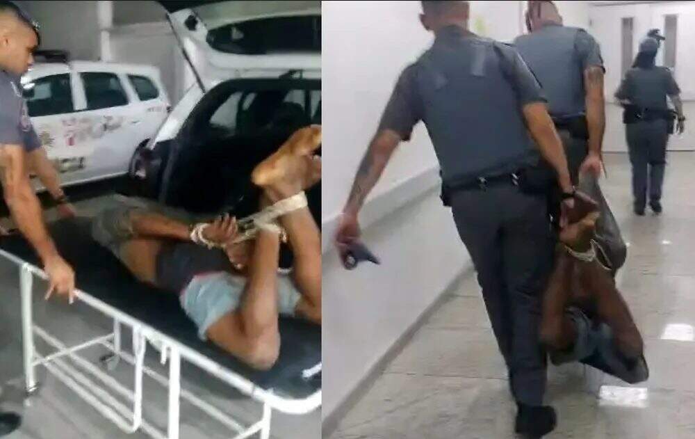 Foto: ReproduçãoA defesa do homem amarrado pelos pés e mãos com corda durante uma abordagem policial protocolou pedido de indenização por danos morais de R$ 1 milhão na Justiça paulista. A ação protocolada nesta terça-feira (23) pede a condenação do Estado de São Paulo pela prática de tortura cometida por policiais militares no exercício da profissão.