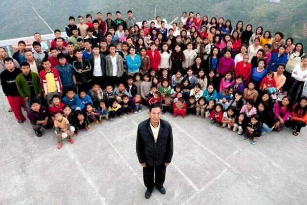 Com um total de 167 membros, a família é a maior do mundo, segundo a mídia local, embora isso dependa de se contar com os netos, dos quais Ziona tem 33.