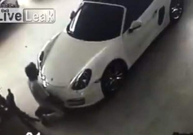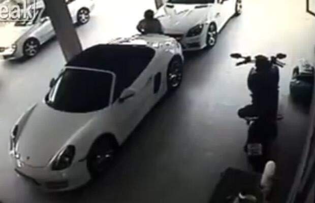 Um homem foi flagrado por câmeras de segurança simulando um ato sexual com um automóvel Porsche em um estacionamento na Tailândia.