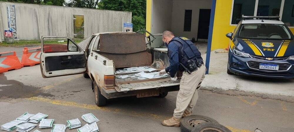 Os policiais abordaram uma Chevy, com placas de Santana do Livramento. Ao vistoriarem o interior do veículo, localizaram 600 pacotes de inseticida, totalizando 150 quilos de agrotóxicos de origem estrangeira introduzidos ilegalmente no País. Os produtos estavam escondidos em um fundo falso na carroceria do veículo.