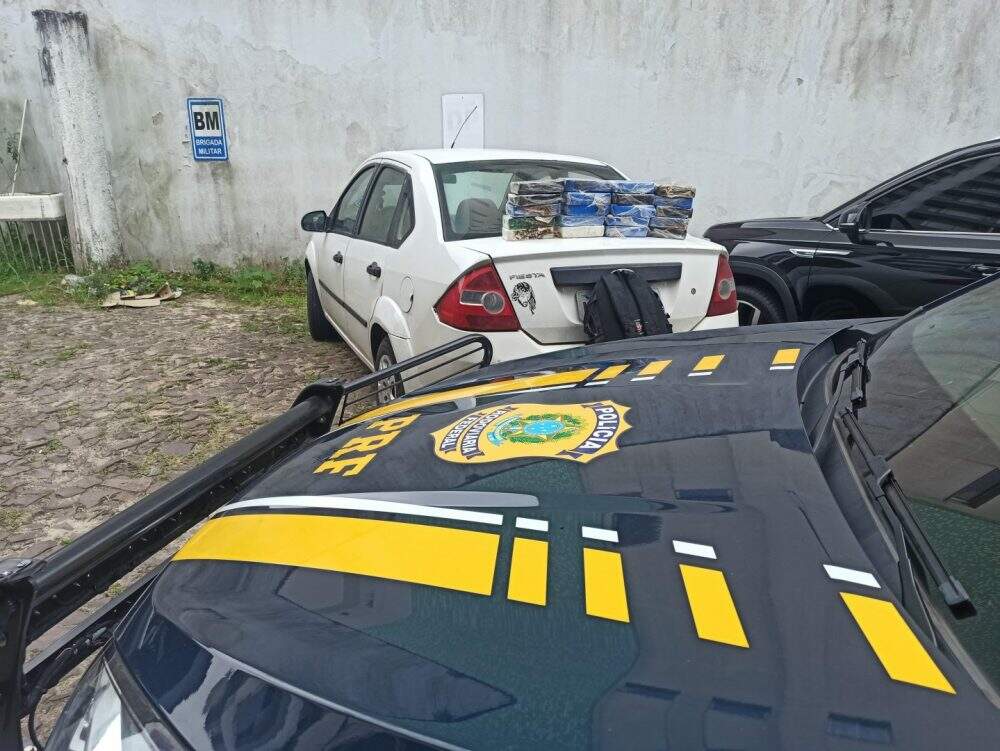 Durante a fiscalização, foram localizados 17 tabletes de substância análoga à pasta base de cocaína no porta-malas, dentro de uma caixa plástica, e 3 tabletes em uma mochila no banco dianteiro do passageiro, ao lado do motorista. A droga pesou 20 kg.