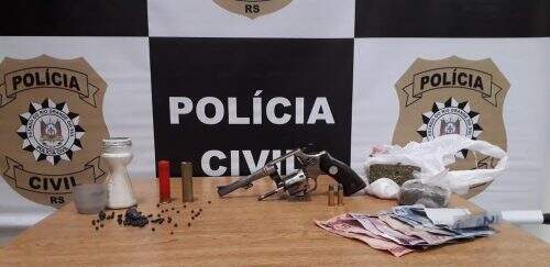 Policiais encontraram o criminoso na manhã deste sábado, com arma, munição, drogas e dinheiro (Foto: Divulgação/Polícia Civil)